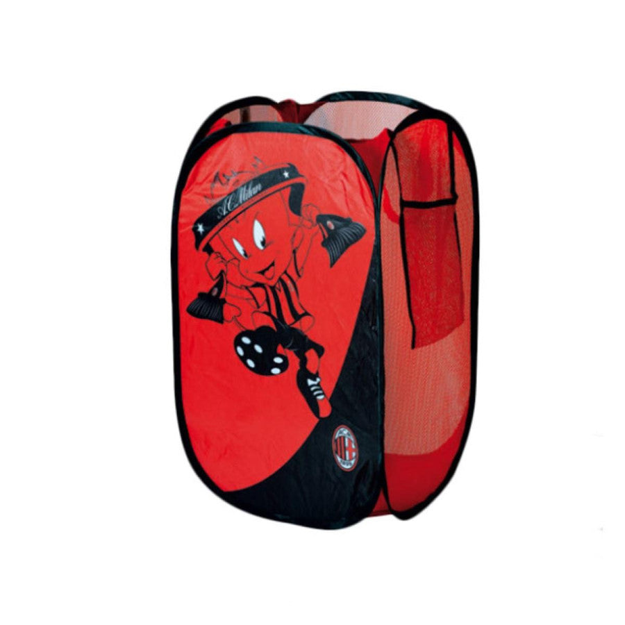 Official AC Milan laundry basket in red and black fabric featuring the club’s mascot graphic. Lightweight, foldable, and self-standing, with mesh side panels for ventilation. Perfect for children’s rooms, combining practicality and team spirit for all young Rossoneri fans.