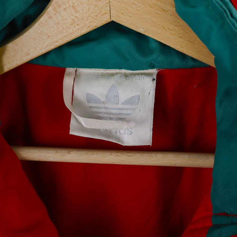 The official Liverpool coat for the 1992/1993 season, produced by technical sponsor Adidas, is an iconic piece from the '90s. This winter jacket features a striking red and teal color scheme, with the Adidas logo printed in white across the back. On the chest, alongside the embroidered Adidas logo, is the Liverpool crest with the famous Liverbird, the club's symbol. The coat is equipped with a zip and snap button closure, as well as side pockets for convenience. Sized 38/40, it’s perfect for collectors or fans wanting to relive a historic era of the English club.