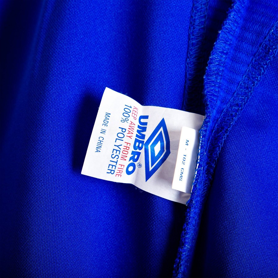 Chelsea home match shirt blue season 1999/2000 short sleeves with collar with white inserts. On the front is applied in flock to the center logo of the commercial sponsor Autoglass, on the heart side is embroidered crest of the team and on the right side is embroidered Umbro logo. On the sleeves are flocked the official patches of the Premier League. On the back are applied in flock the number 10 and the lettering CASIRAGHI.