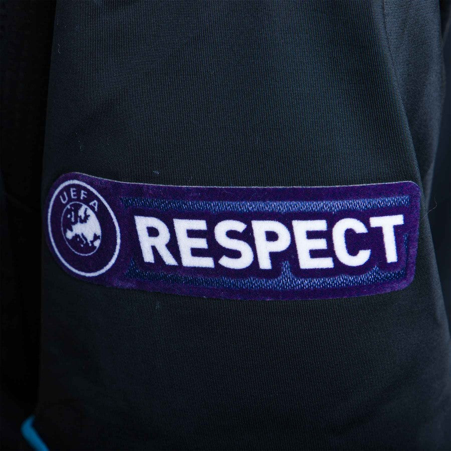 Chelsea season 2011/2012 short sleeve shirt with blue and white inserts. Present on the front the logo Samsung and ADIDAS applied, while on the heart side is embroidered Chlesea crest. On the back are applied number 11 and lettering Drogba in addition to the slogan Right To Play. On the left sleeve is sewn the RESPECT patch and on the right the Champions League patch.