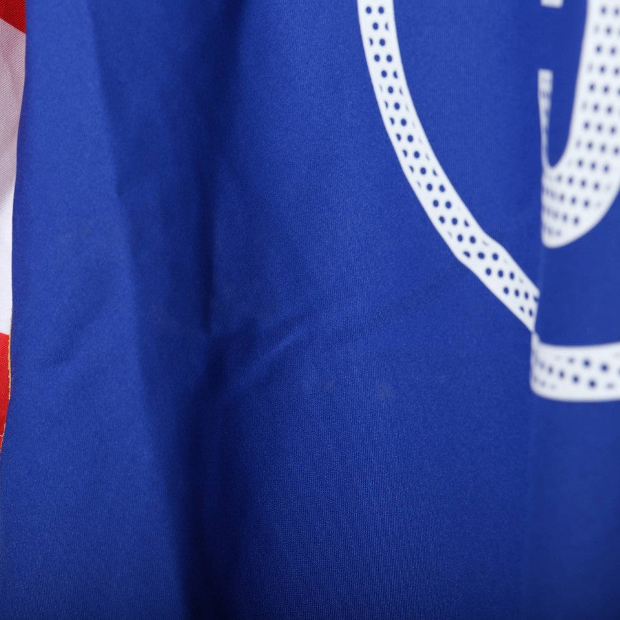 Croatia Euro 2004 away jersey, in royal blue color and with red and white checkered pattern on the sleeves. Breathable fabric on the sides. The team patch and the Nike mustache are applied on the front in light plastic. On the back is printed Lucic 5 personalization.