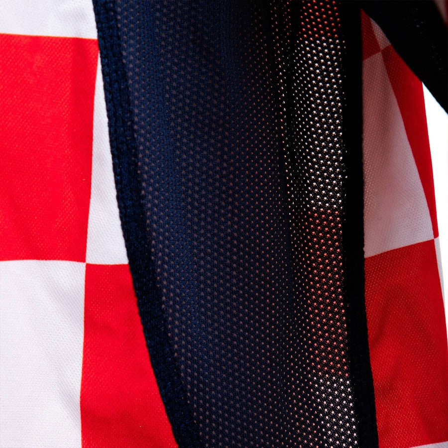 Home match jersey of the Croatian National Team for the period 2000-2002. Croatia Federation logo sewn on the heart side, Nike logo embroidered on the right side.
