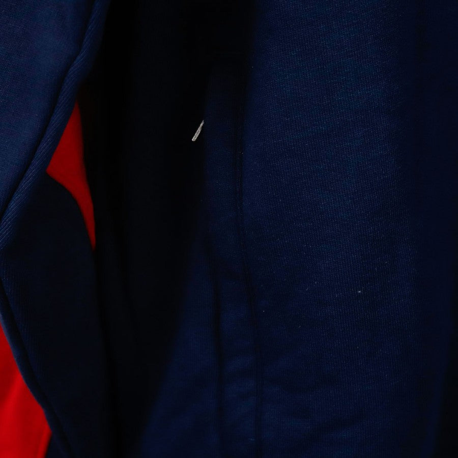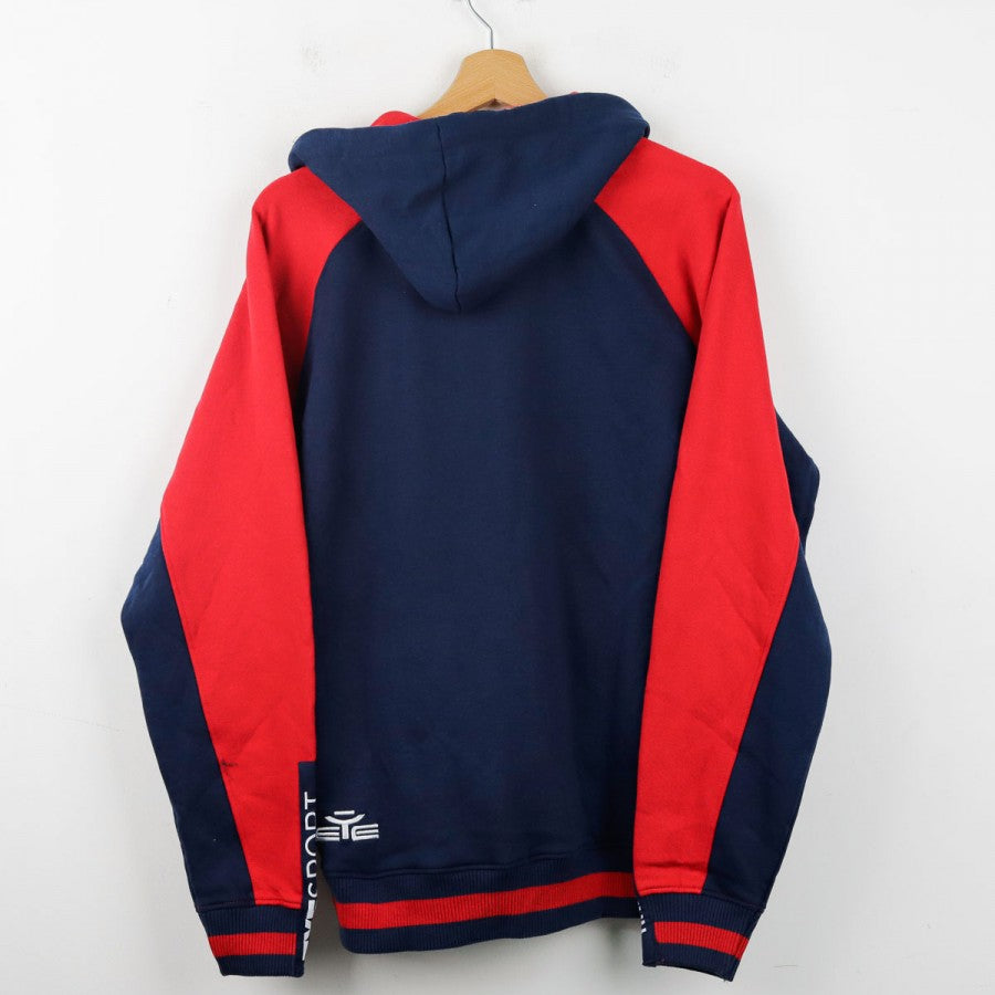 Official Cagliari hoodie for the 2022/2023 season, made by Eye Sport. The design features the club's classic red and blue colors, an adjustable hood with drawstrings, and a front zip. The Cagliari logo is placed on the chest, while the club's name is printed inside the hood.