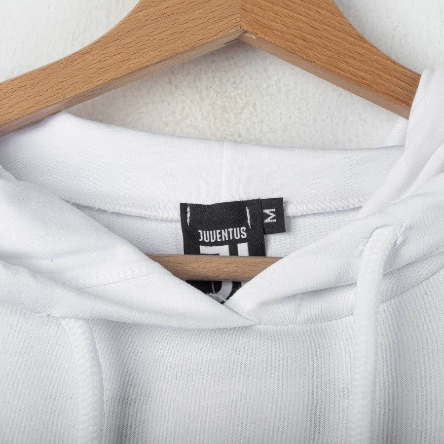 Official Juventus white hoodie featuring a bold “BLACK WHITE” graphic across the chest and the club’s minimal logo below. Includes front kangaroo pocket, ribbed cuffs and hem, and adjustable drawstring hood.