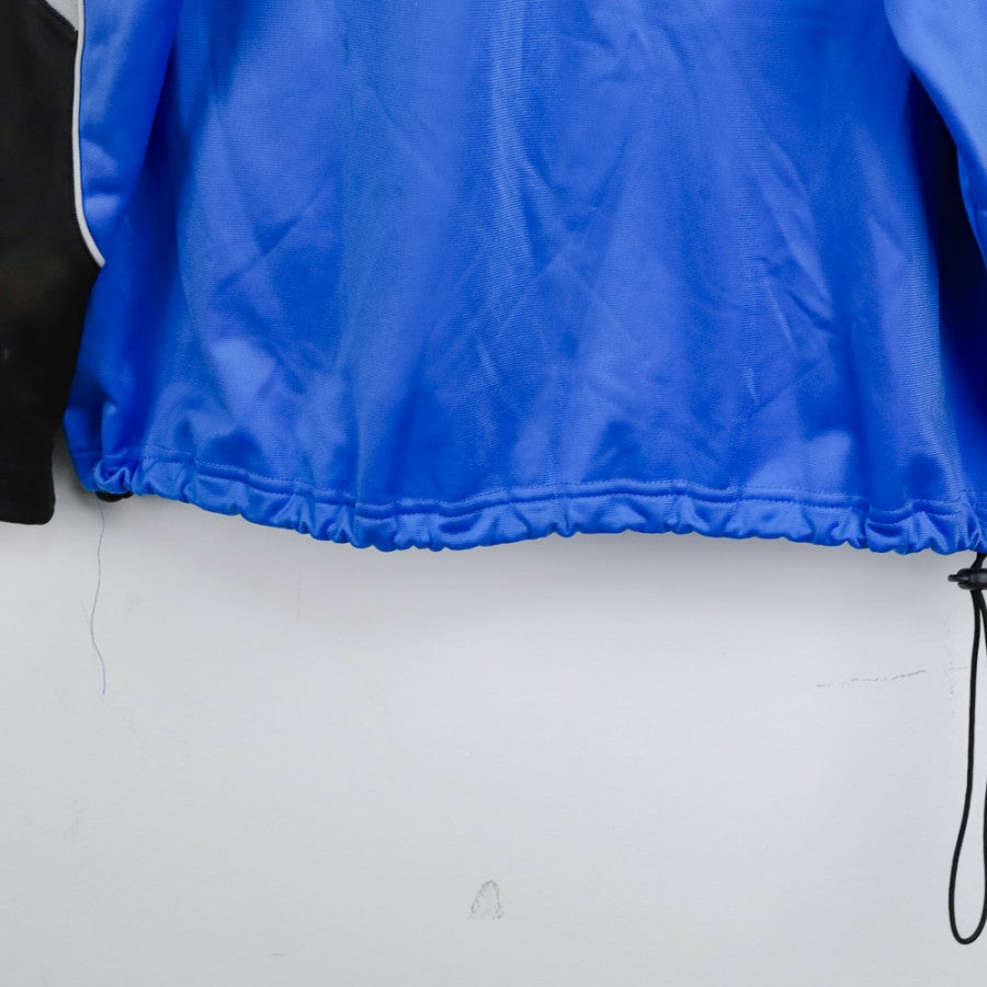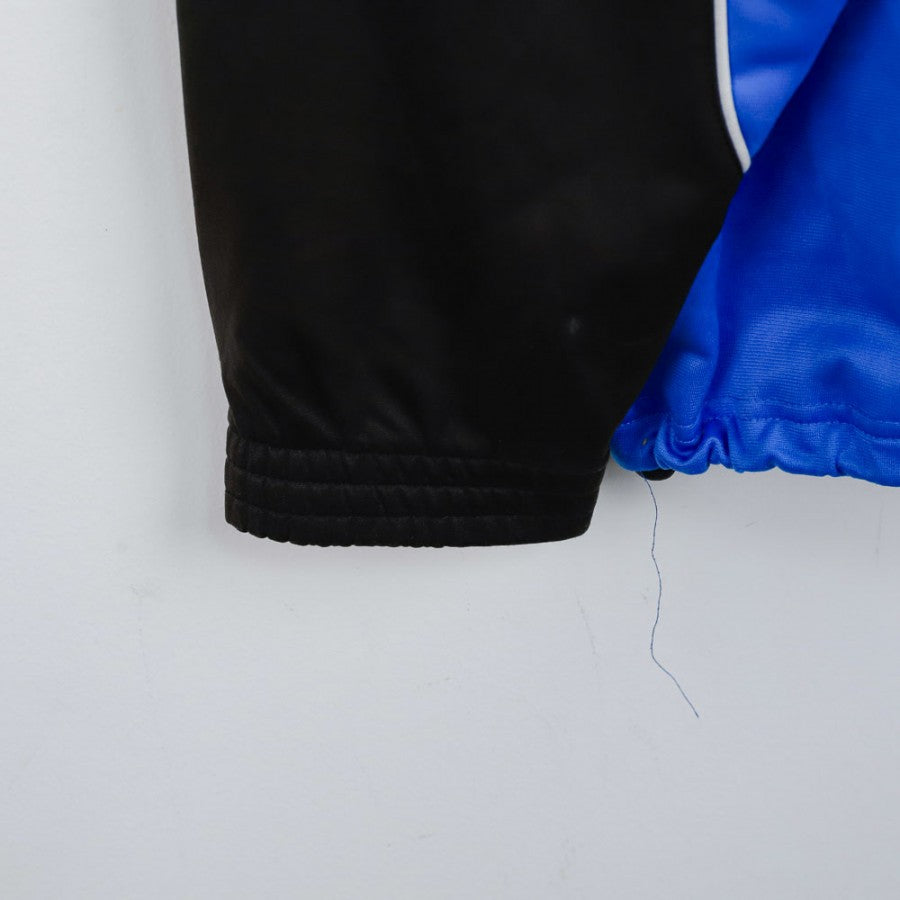 Official SSC Napoli sweatshirt for the 2002/2003 season, designed by technical sponsor Diadora. This sweatshirt features a combination of blue, black, and white colors, with a front zip closure and a high collar. The Napoli crest is embroidered on the chest alongside the Diadora logo. On the back, under the collar, the text "SSC Napoli" is embroidered in white, completing a sleek and functional design. Made from technical fabric, it is ideal for staying warm during training sessions or casual wear. Size: L.