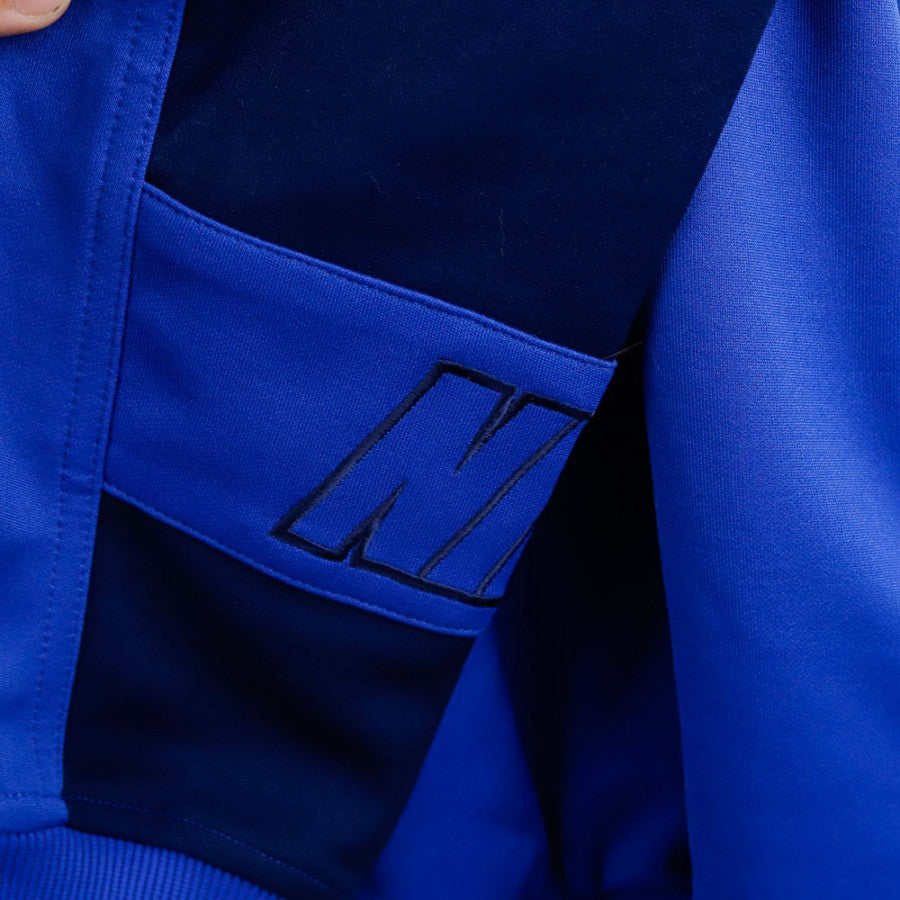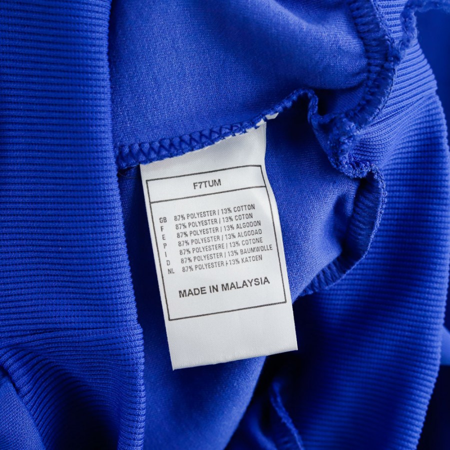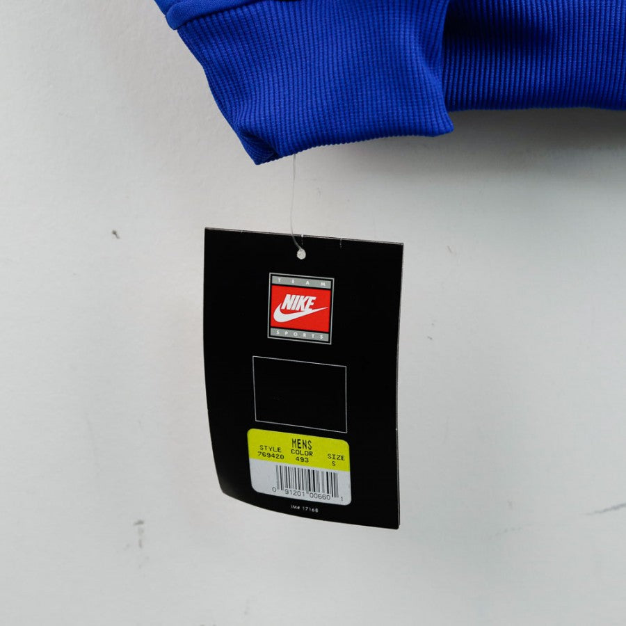 Official Napoli sweatshirt made by Nike for the 1998/1999 season, complete with original tag. Features include Nike logos on both sides, Polenghi commercial sponsor, and SSC Napoli crest on the chest. The sweatshirt is predominantly bright blue with darker sleeve inserts and contrast “NIKE” embroidery on the cuffs. Size S as shown on the inner label.