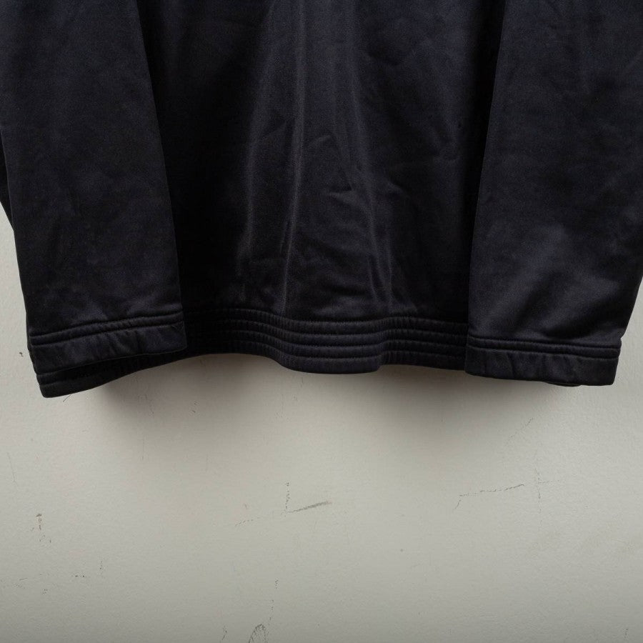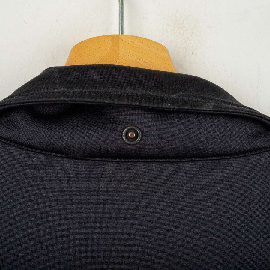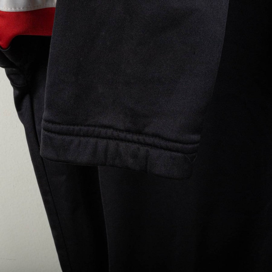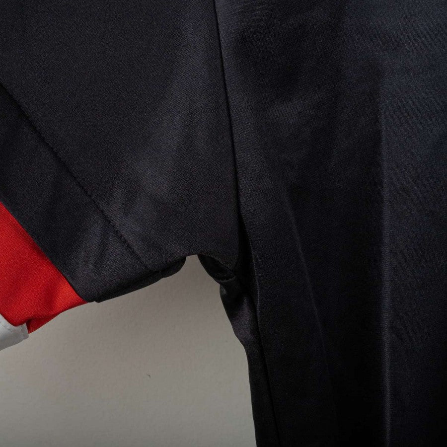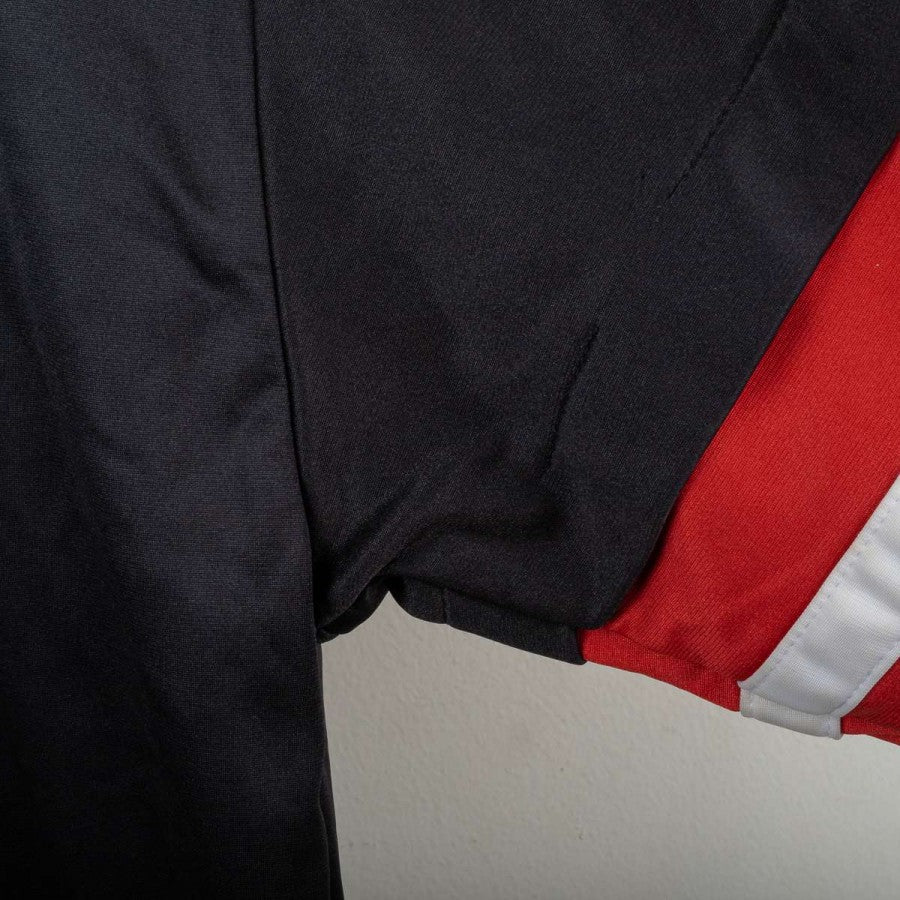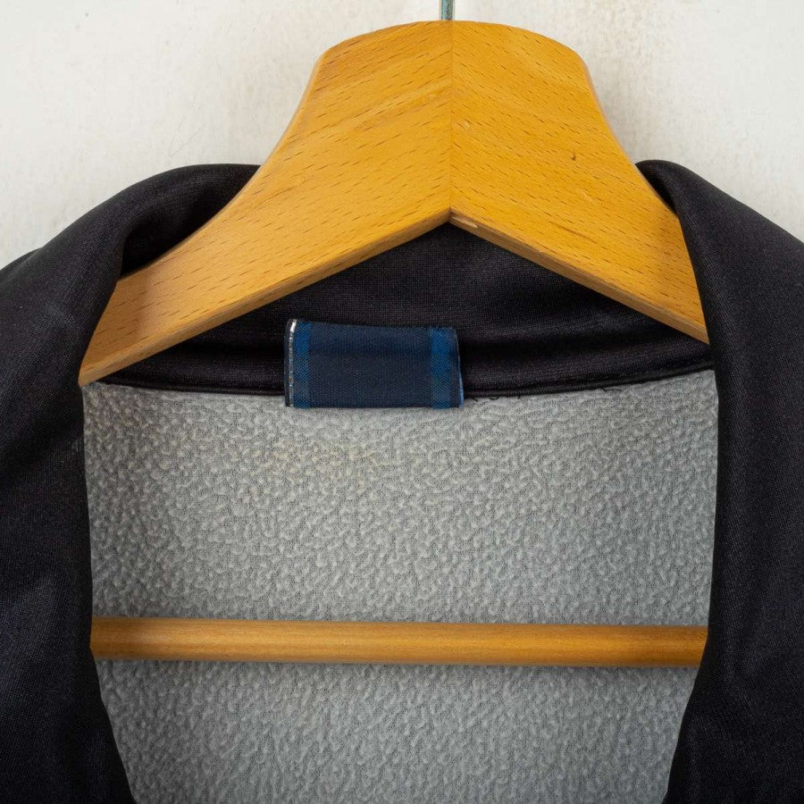 Salernitana jacket from the 1995/1996 season, made by Asics. Black with red and white details on the sleeves and woven Asics logo tape on the shoulders. White embroidered Asics logo on the right chest and large logo on the back, stitched Salernitana crest on the left chest. Full front zip closure, side pockets, and soft grey fleece lining. Comfortable fit. Size L. Original vintage piece from the official training collection.