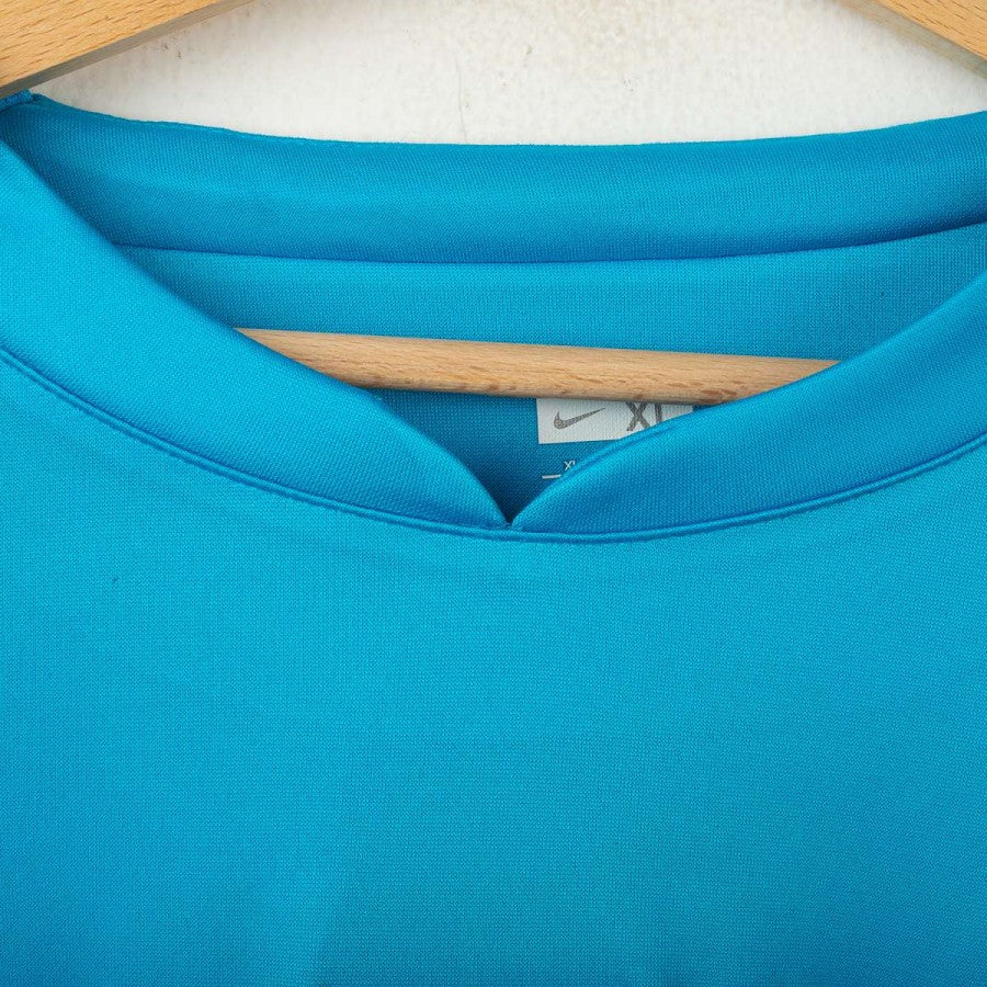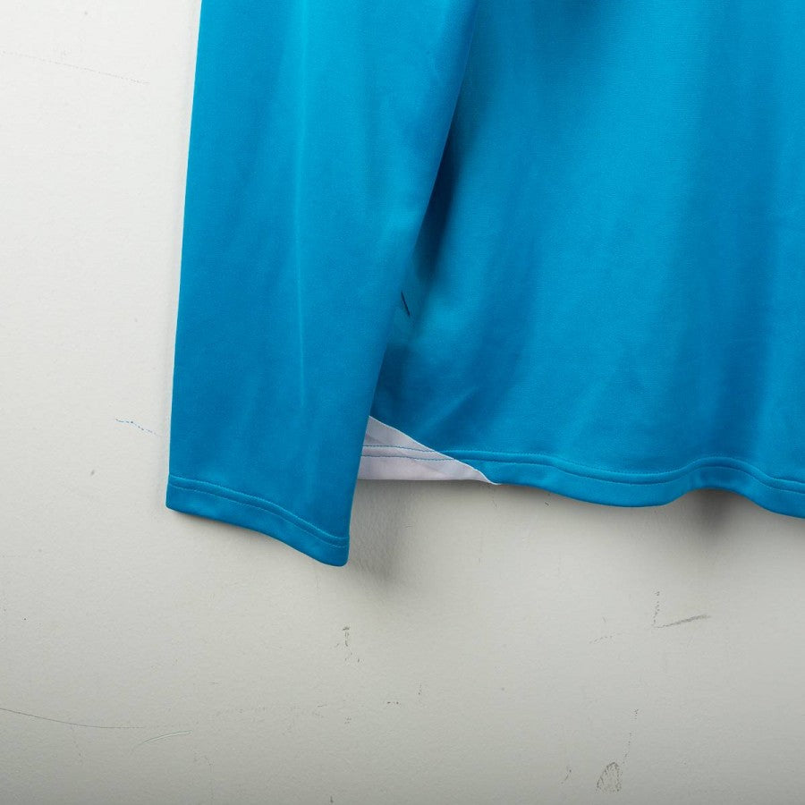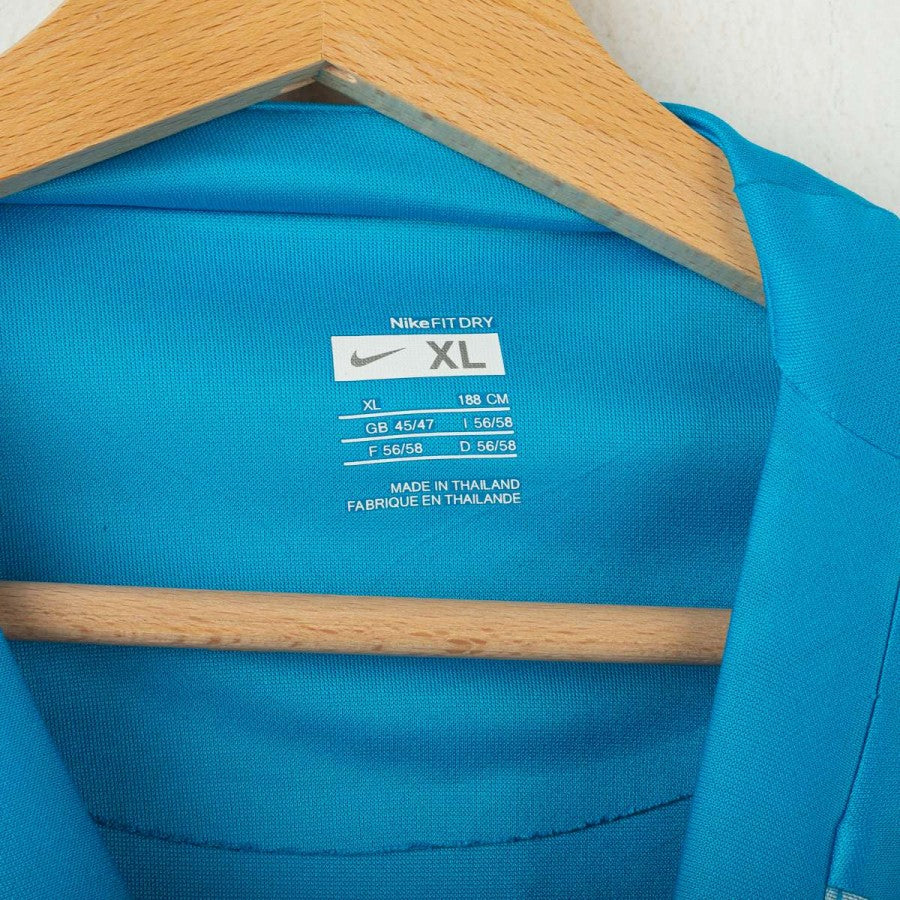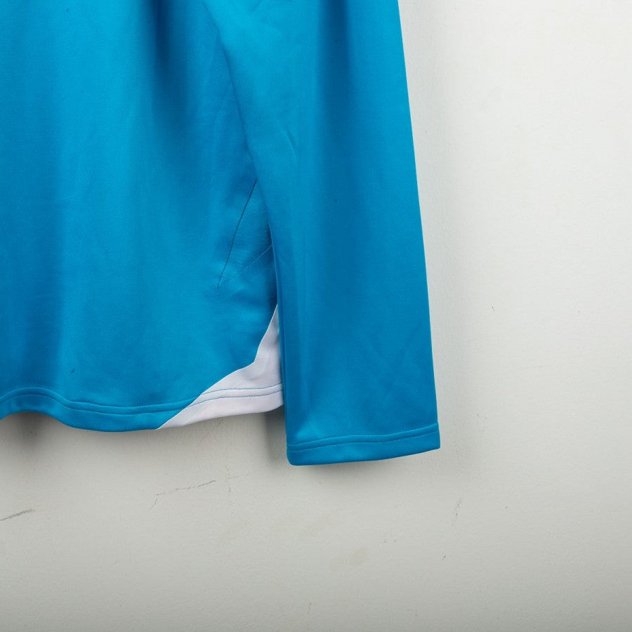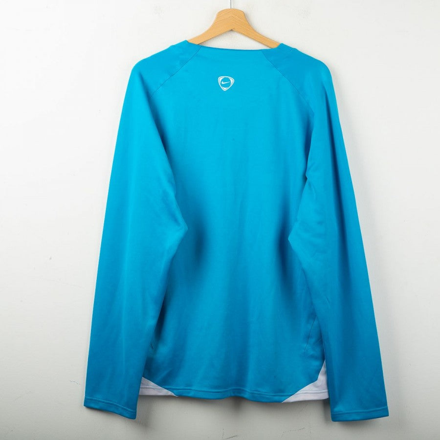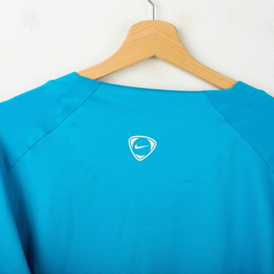 Official Inter training sweatshirt from the 2007/2008 season, made by Nike. Centenary edition (1908-2008) in light blue with white inserts. Embroidered Inter crest with gold "100 Anni Inter" text, stitched Italian Scudetto, and applied Nike logo. Pirelli sponsor printed on the chest. Round neck with "Inter" detail on the shoulder. Made from NikeFIT Dry technical fabric for comfort and breathability. Long sleeve version, size XL.