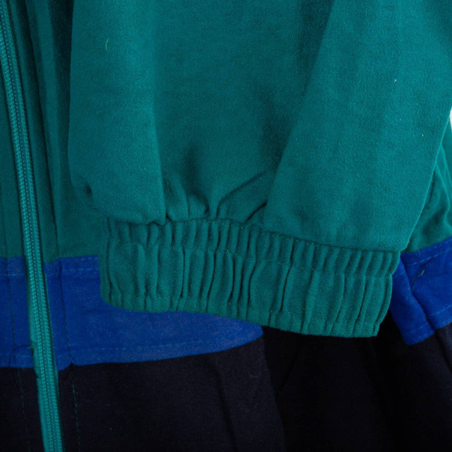 Official Kappa FC Barcelona jacket from the 1995/1996 season. Vintage design with typical 1990s colors: petrol green, navy blue, and red. Embroidered Kappa logo on the chest and back, logo bands down the sleeves, and the F.C. Barcelona crest on the inside tag. Front zip with Kappa zip puller and elasticated cuffs. Size XXL. An iconic piece that perfectly represents the sporty, retro style of the Cruyff-Kappa era.