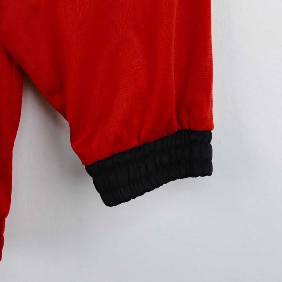 Official AC Milan jacket from the 1995/1996 season, produced by technical sponsor Lotto. The jacket features a red, white, and black design with the club crest embroidered on the chest, accompanied by the celebratory star for domestic success. The Opel commercial sponsor is displayed below the crest and on the back. Equipped with practical pockets and a central zipper. Designed specifically for kids.
