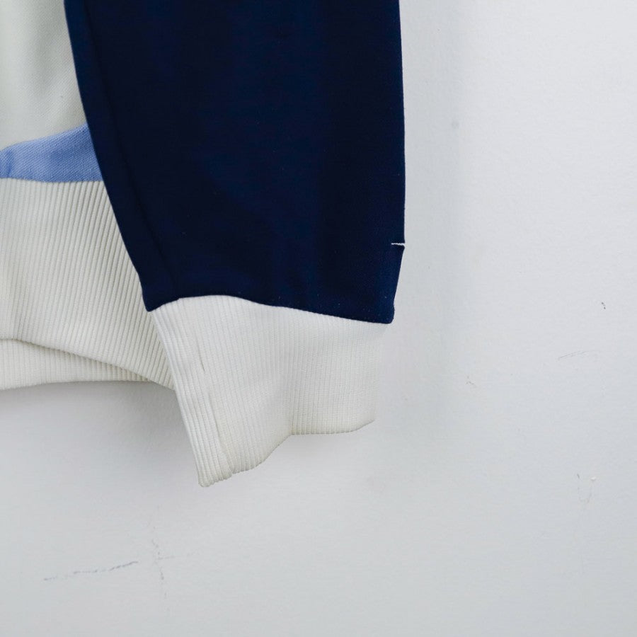 Official SSC Napoli jacket for the 2007/2008 season, produced by technical sponsor Diadora. This white jacket with blue sleeves and light blue inserts features the embroidered Diadora logo on the chest and back, along with the Lete commercial sponsor applied on the front and rear. The SSC Napoli round crest is stitched on the heart side. The full zip closure, ribbed cuffs, and hem complete the sporty design. Size L.