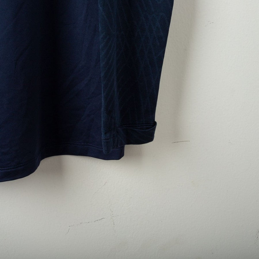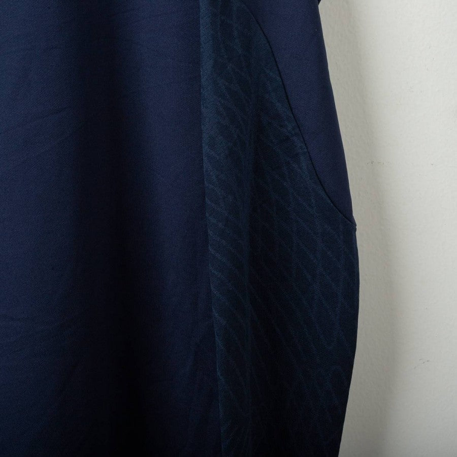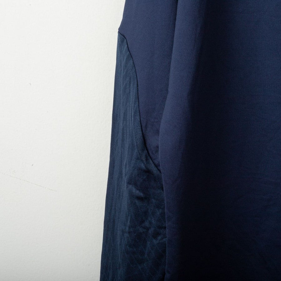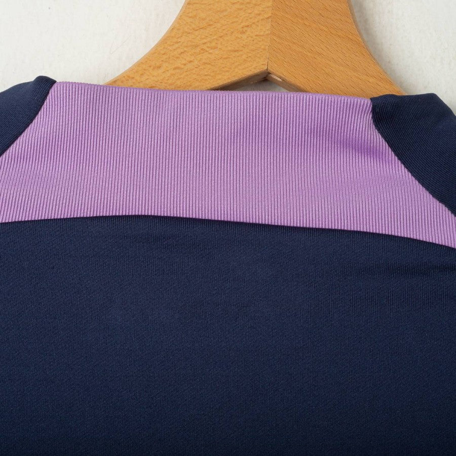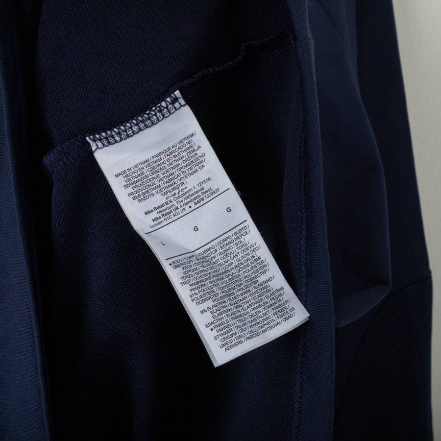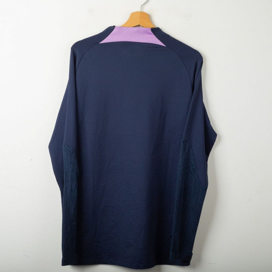 Tottenham training jacket from the 2023/2024 season, made by Nike. The front displays the Nike technical sponsor and the Spurs club crest, along with the commercial sponsor Getir. Also present is the "EW" initial, possibly referring to a staff member. Size L. The jacket features a modern design with navy blue and purple tones, ideal for fans and collectors.