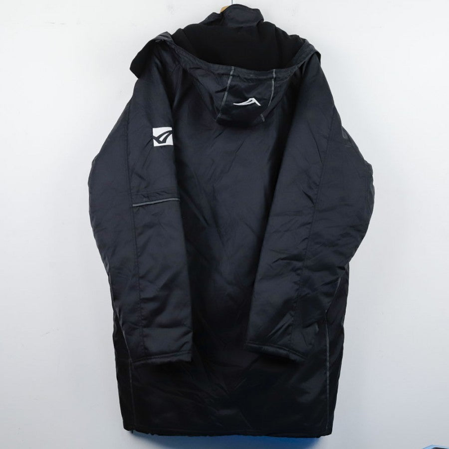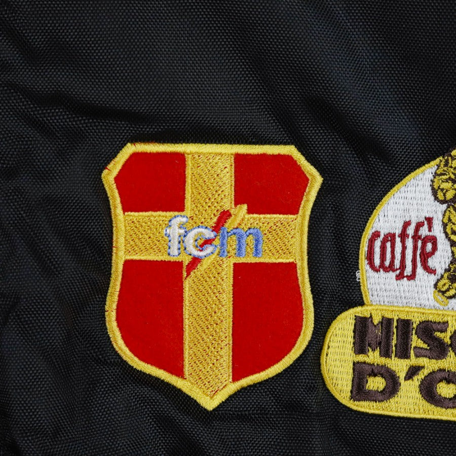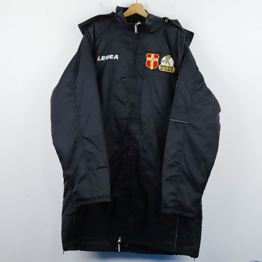 Official Messina FC coat produced by technical sponsor Legea for the 2004/2005 season. The design features the embroidered Legea logo on the chest next to the club's crest, complemented by the iconic "Biscotto d'Oro" commercial sponsor logo. The integrated hood and zip closure ensure comfort and practicality, making this item a distinctive piece from the Sicilian club during a historic Serie A season.