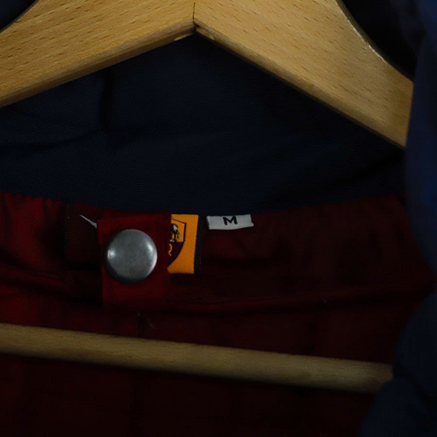 Official AS Roma winter jacket from the 2005/2006 season, produced by technical sponsor Diadora. This medium-sized jacket features a dark blue design with yellow-red details along the sleeves and collar. The chest displays the embroidered Diadora logo and AS Roma crest, alongside the "as roma" text. Equipped with an adjustable hood, front zip and button closure, and side pockets, this jacket provides excellent comfort and cold-weather protection. A must-have for Roma fans during the colder months.