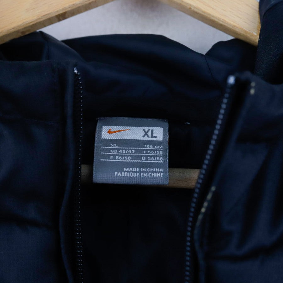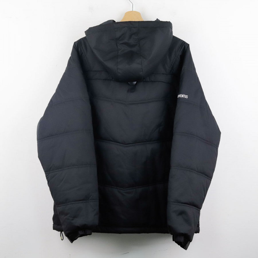 Official Juventus jacket made by Nike for the 2006/2007 season. The design is entirely black, featuring thermal padding and an adjustable hood. The Nike logo and Juventus crest are displayed on the chest, while "Juventus" is printed on the sleeve. Size XL.