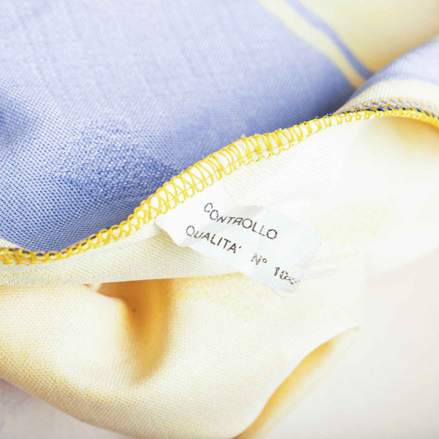 Yellow jersey with blue inserts and buttonless polo collar. Away uniform of Hellas Verona season 1995/1996. Hellas logo flocked on the left sleeve, sublimated team logo in the center, Errea and Rana logos in the weave on the front of the shirt, DE VITIS lettering and number 9 applied on the back.