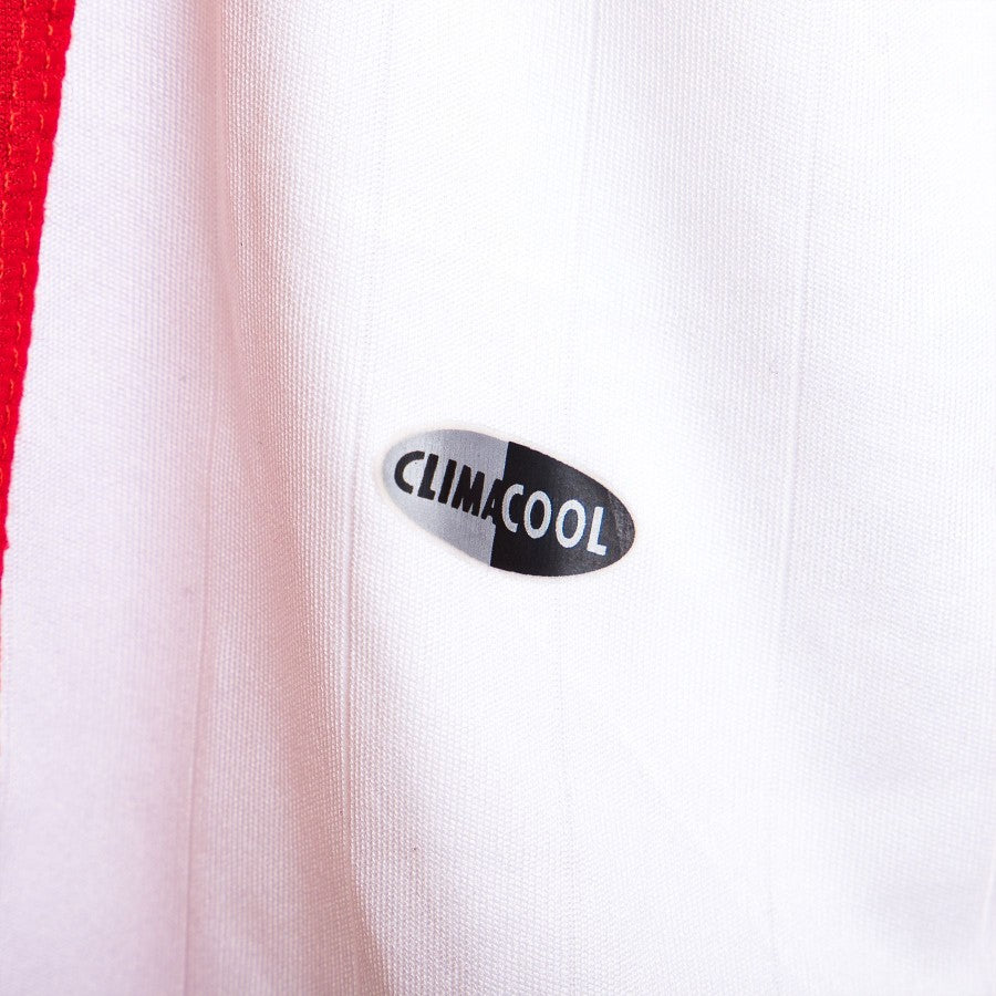 Adidas short-sleeved shirt white with red vertical band. On the front are embroidered the Adidas logo and the team logo while on the left side is sublimated the logo of the commercial sponsor Abn-Amro. On the back are printed number 10 and lettering SNEIJDER.