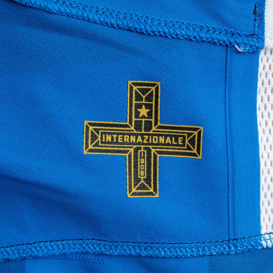 Lautaro Martinez's 2019/2020 season Inter Home match shirt. Both the team logo on the heart side and the Nike logo on the right side are applied in hard plastic on the front. On the back are printed LAUTARO lettering and number 10 in white plastic with Inter logo inside, as well as the logo of the second commercial sponsor Driver. On the right sleeve is the Serie A Tim patch. The logo of the commercial sponsor Pirelli is printed in light plastic on the front. On the bottom is Nike's Enginereed label and the manufacturer's label is heat-sealed on the inside.