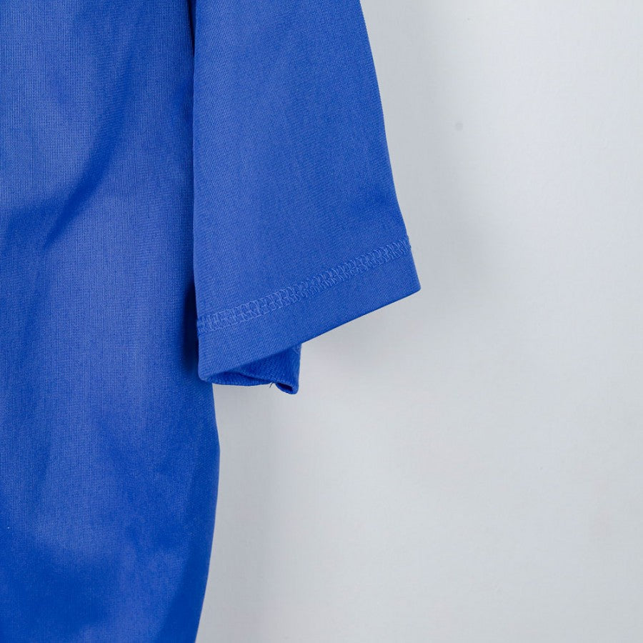The model is light blue with white details, featuring a tricolor graphic on the chest and a World Cup print over the heart.