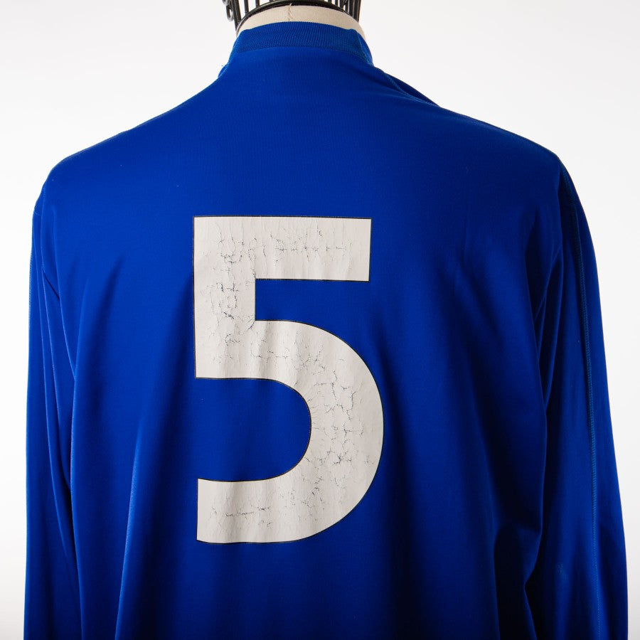 Long-sleeve model in blue with a high collar. Elastics at the wrists give it a more comfortable fit. Italy patch sewn on the heart side with the three stars in embroidery and Kappa logo on the right side. The jersey is personalized with the number 5, featured on both the front in small print and on the back.