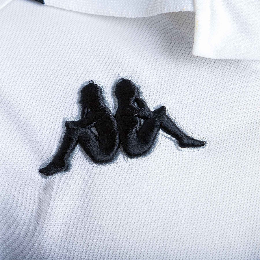 Juventus match worn jersey 1998/1999 Away model with long sleeves. On the front we find the logo of the commercial sponsor sublimation, the logo of Kappa embroidered on the right side and the emblem of the Scudetto embroidered on the left side. The Juve logo is stitched on the left sleeve while the right sleeve features the Lega Serie A patch.
