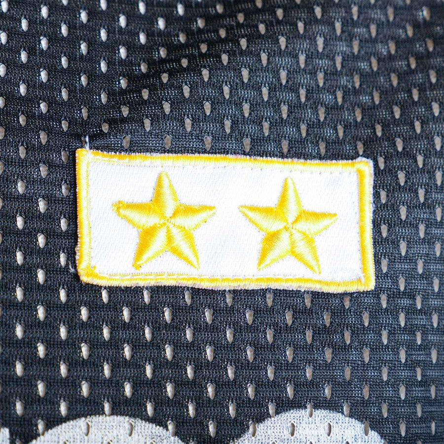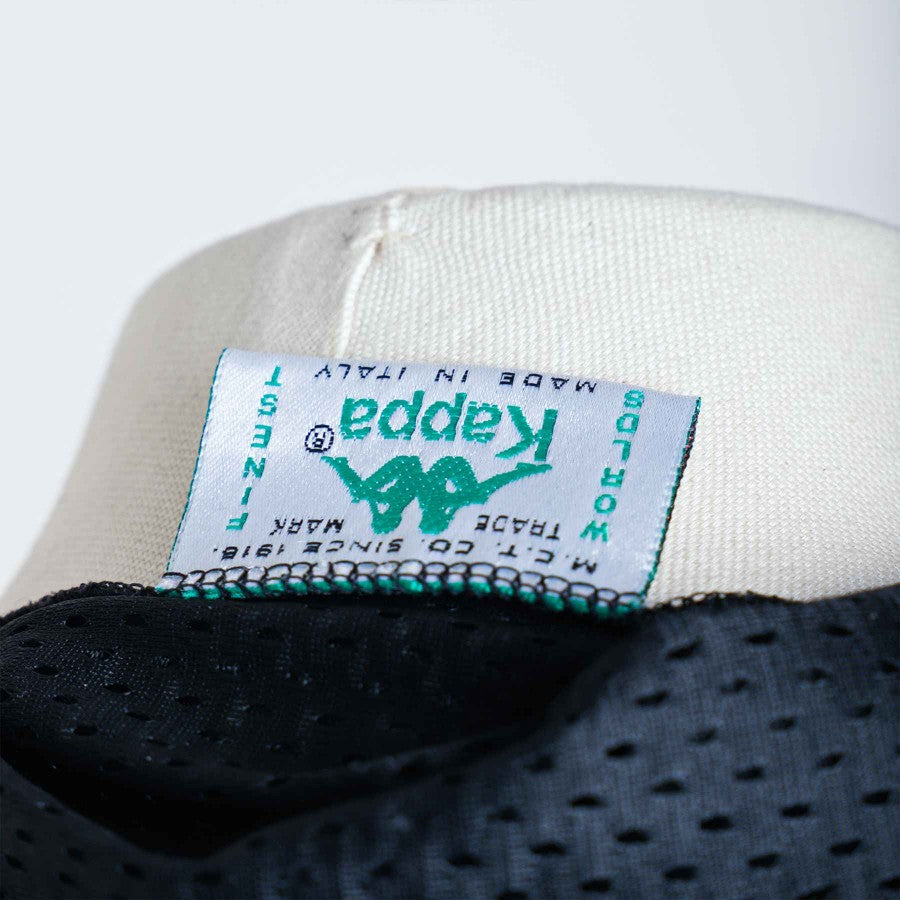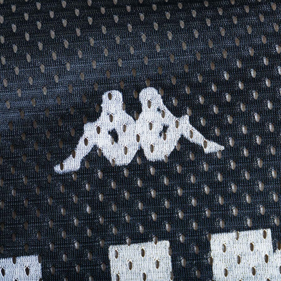 In the 1990-91 season, Juventus presented a brand new black away jersey. For the first part of the season, the black jersey was made of a special material, a fabric already experimented by Juventus with the training jersey made in black and white for the pre-season retreat. Coppa Italia crest sewn under the two stars. Kappa logo and Umip logo applied in white.