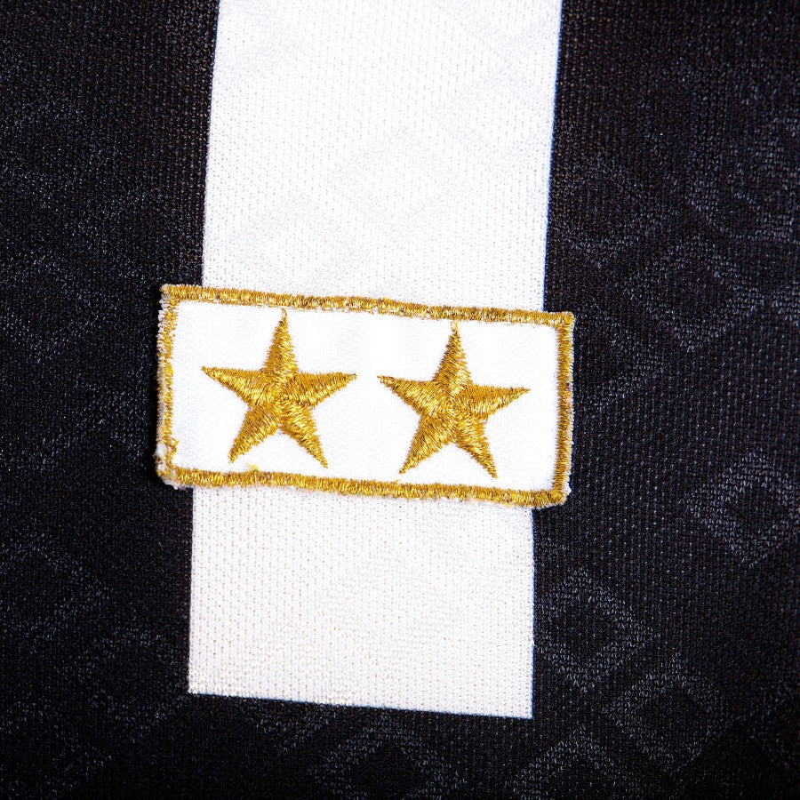 Juventus long sleeve jersey 1993/1994. Kappa logo embroidered in green and stars sewn in yellow on patch applied on the left side. Danone sponsor in white sublimatic color inserted in a black rectangle.