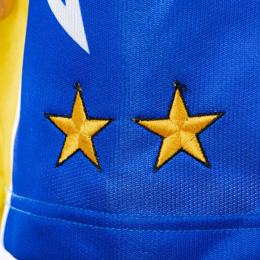 The product is clearly visible thanks to several photos. The shorts are completely blue, apart from some yellow and white inserts, and with the exception of the white logo of Kappa, technical sponsor, embroidered at the bottom left, and for two golden stars embroidered at the bottom, but on the right side; in addition to these details, two large stars made up of white lines are applied in sublimation to the sides of the shorts.