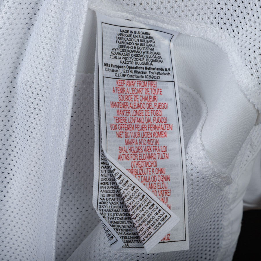 The jersey is in excellent condition from a fabric standpoint, but has a few haloes and imperfections on the print. Inside label with size L.
