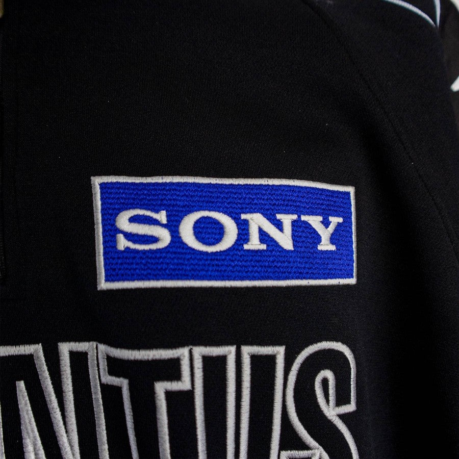 Juventus training suit from the 1996/1997 season. Kappa logo stitched. Juventus lettering embroidered on the front. Sony sponsor sewn on the left side.