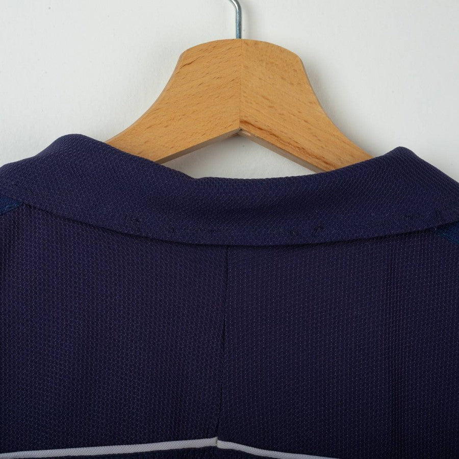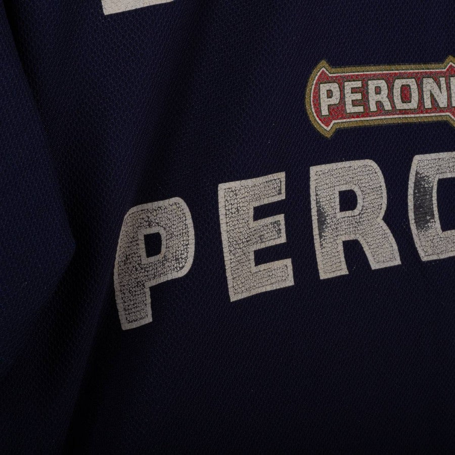 Napoli training shirt from the 2000/2001 season made by Diadora. Short-sleeved navy model with white and light blue details on the shoulders. Embroidered Diadora logo on the right chest and stitched SSC Napoli crest on the left chest. Peroni sponsor printed on the front and back. Number 15 applied on the lower front. Regular fit. A historic piece linked to Napoli’s Serie A years at the turn of the millennium.