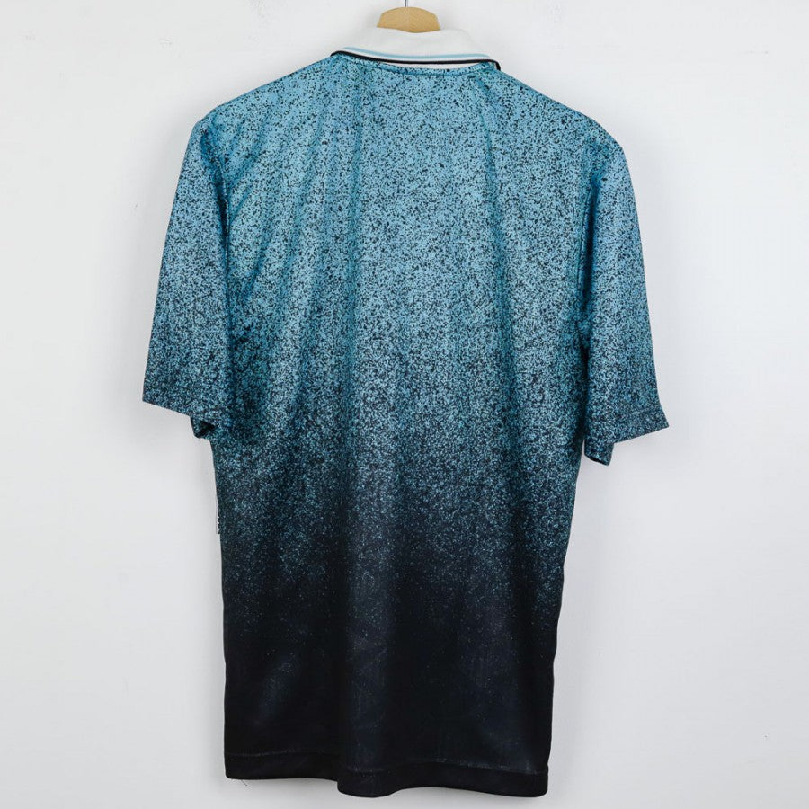 The official FIGC referee shirt for 1990, produced by Diadora, is a historic piece of Italian football history. Featuring a unique gradient design transitioning from blue to black, the shirt captures the distinctive style of the era. The FIGC logo with three stars and the Italian flag colors is prominently displayed on the chest, outlined with a gold border. The white polo collar adds an elegant touch, while the Diadora logo, embroidered on the right chest, highlights the shirt’s quality. Complete with functional front pockets, this jersey was worn during matches in the golden years of Italian football.