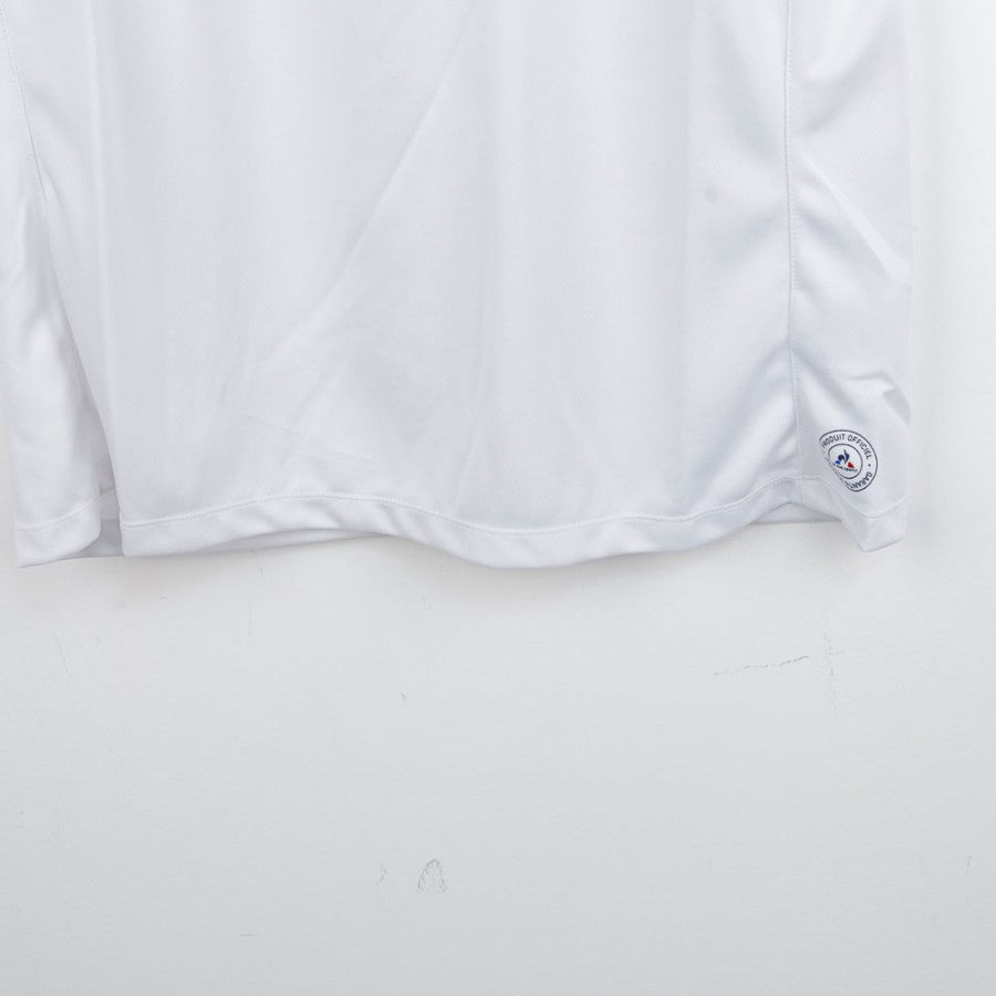 Official Fiorentina away jersey from the 2016/2017 season, personalized with "Chiesa" and the number 25. Produced by technical sponsor Le Coq Sportif, the jersey comes in a stylish white color with purple details on the collar and sleeve cuffs. The Fiorentina crest is stitched on the left chest, while the sponsor logo appears on the right. On the back, "Chiesa" and the number 25 are in purple. The right sleeve features the Serie A TIM badge for the 2016/2017 season. The size is not specified in the images.