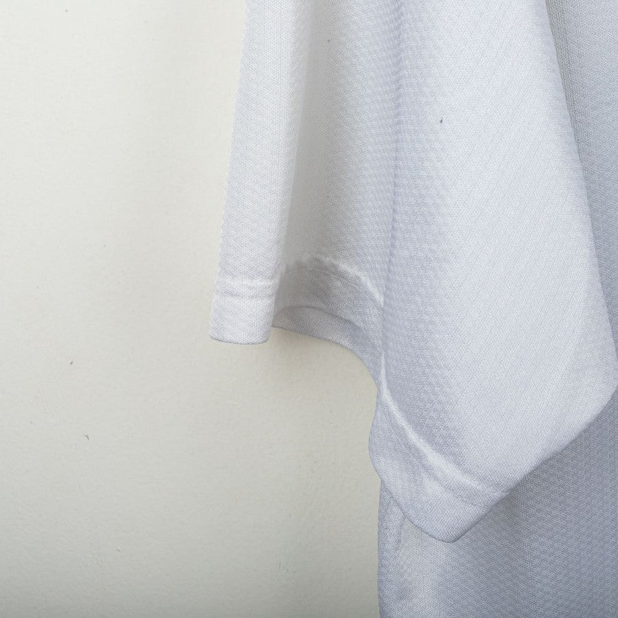 Inter away jersey made by Umbro for the 1997/1998 season, customized with Ronaldo’s name and number 10. Short-sleeve white design with a vertical black, blue and yellow stripe on the left side, with contrasting details on collar and sleeves. Embroidered Umbro logo in blue and flocked “Pirelli” sponsor in black at the center. Sewn Inter crest with star above on the left chest. On the back, “RONALDO” name set and number 10 in black. Regular fit. Size XL.