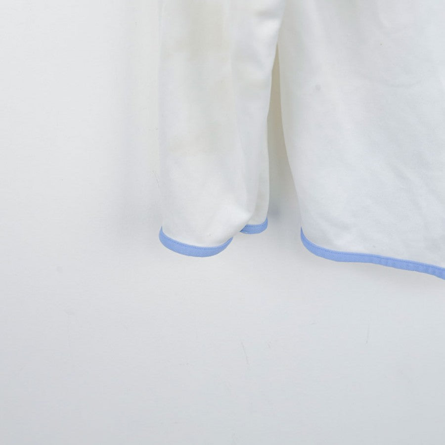 Official Napoli away shirt for the 2006/2007 season, produced by technical sponsor Diadora. This model features an elegant white design with light blue details, such as the lines running across the body and the sleeve edges, reflecting the traditional colors of the Neapolitan club.