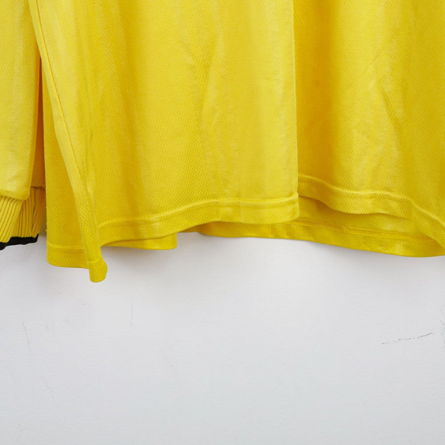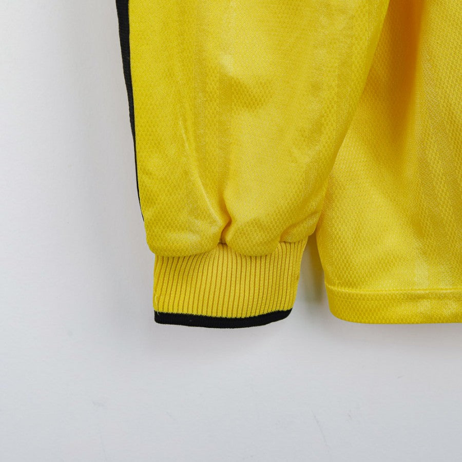 Official Adidas shirt celebrating the 2000/2001 Coupe de France. Bright yellow with black details, central Adidas logo, trophy graphic, and dedicated competition patch on the chest. Number 5 printed on the back. Size XL.