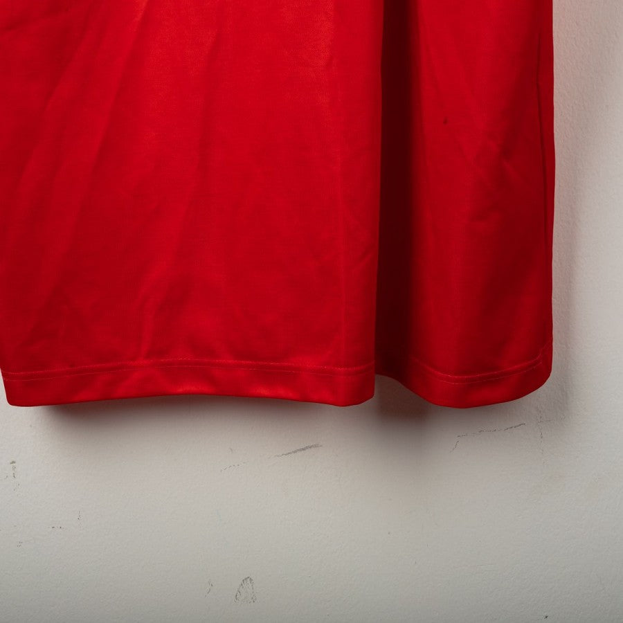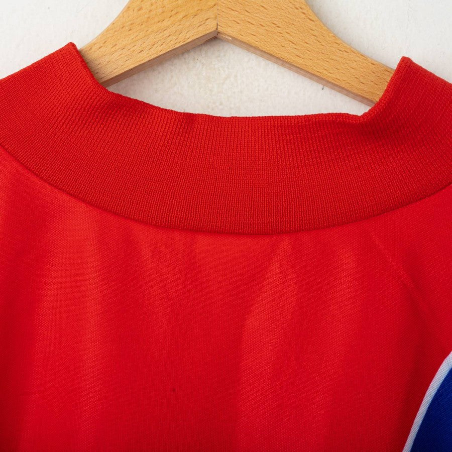 1992/1993 Bayern Munich Home shirt manufactured by Adidas, the team’s technical sponsor. Opel appears as the main commercial sponsor on the front. Size XL. The shirt features a vivid red base with a bold blue and white pattern on the left shoulder, making it one of the most recognizable kits of the early '90s.