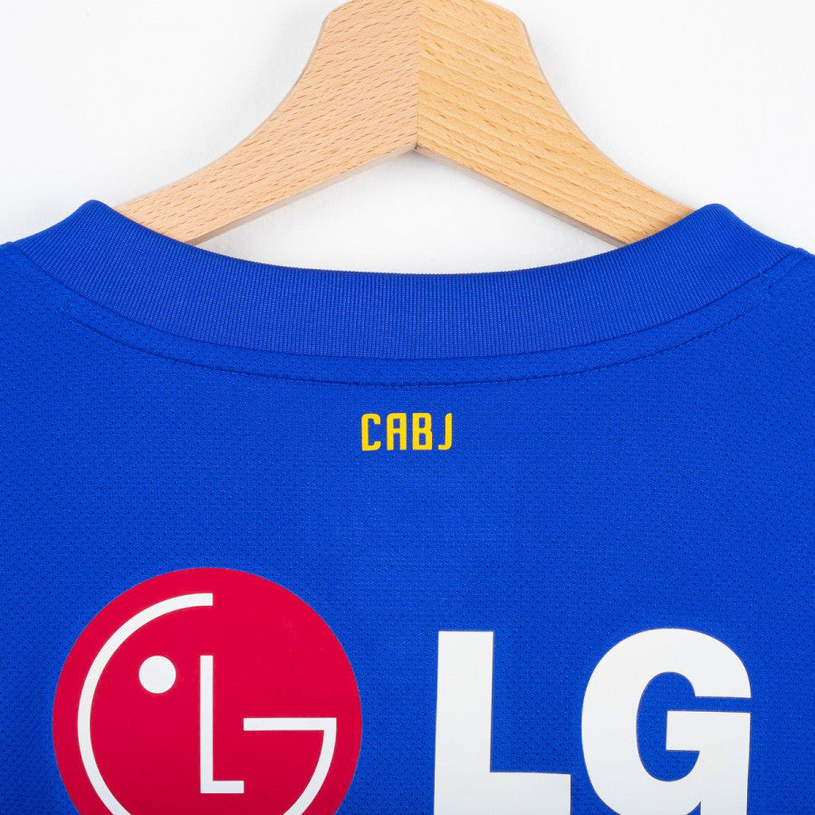 Official Boca Juniors Home Shirt from the 2017/2018 season made by Nike. Classic blue and yellow design with embroidered Nike logo and CABJ crest. LG sponsor on the chest and Total logos on the sleeves. Tévez name and number 32 printed on the back. Made with Dri-FIT technology for comfort and performance. A modern take on the iconic Boca Juniors look. Size L.