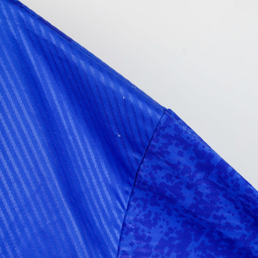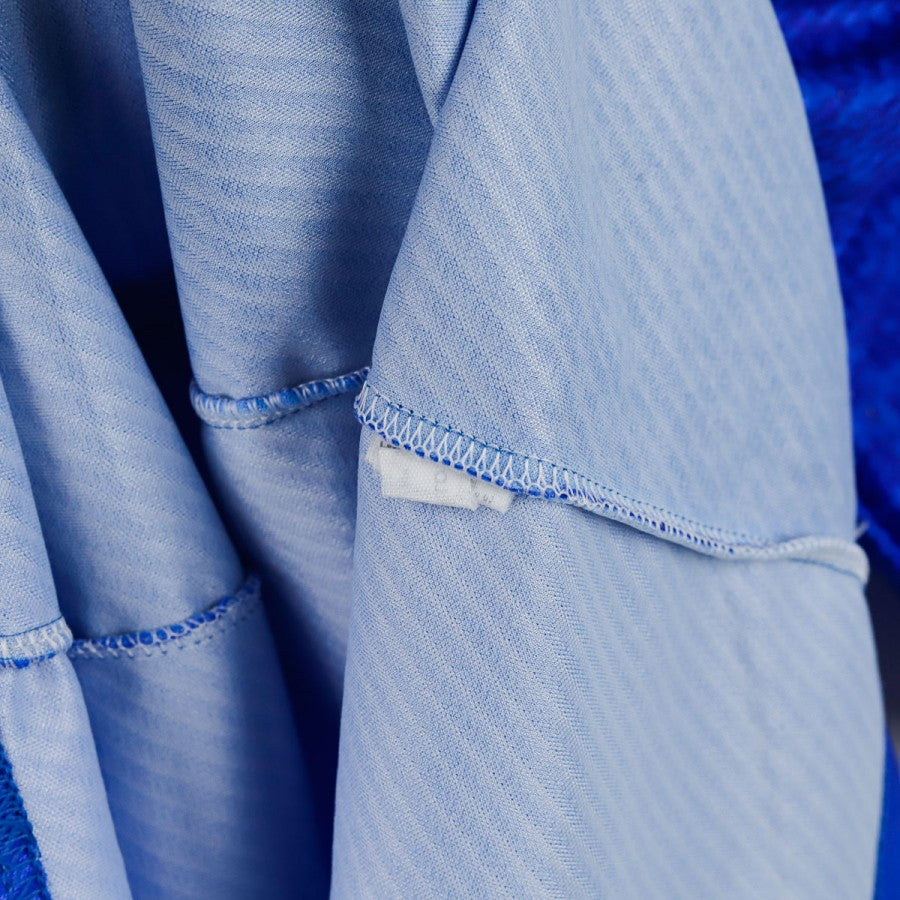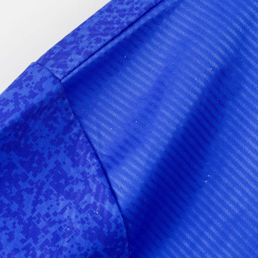 Como home jersey made by Erreà for the 1998/1999 season. Features the club’s classic blue color with a tonal abstract pattern, white collar, and sleeve details. The chest showcases the Erreà logo and club badge, while the Bolti sponsor is prominently displayed in yellow.