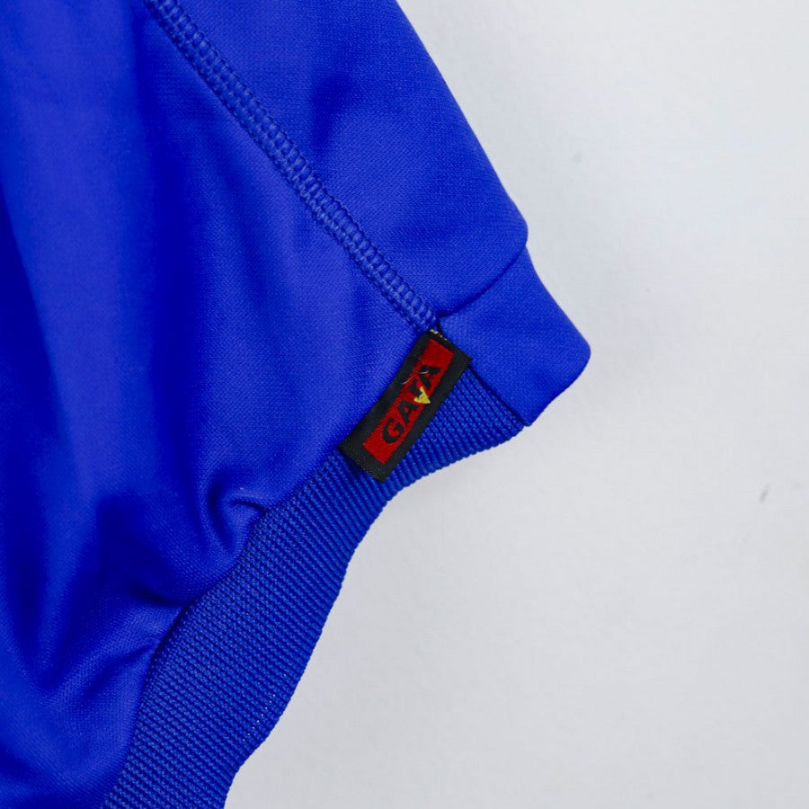 The official Italy Home jersey for 1999 is a historical piece produced by technical sponsor Kappa. This model stands out with its classic deep azure blue, a symbol of Italy’s rich football tradition, featuring a simple yet elegant design. On the chest, the Kappa logo is embroidered in white, alongside the FIGC crest with the tricolor and three stars, representing Italy's World Cup victories up to that time.