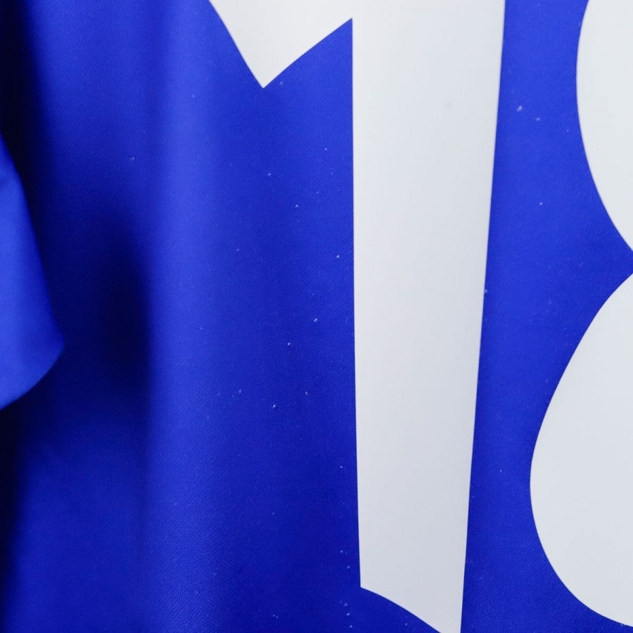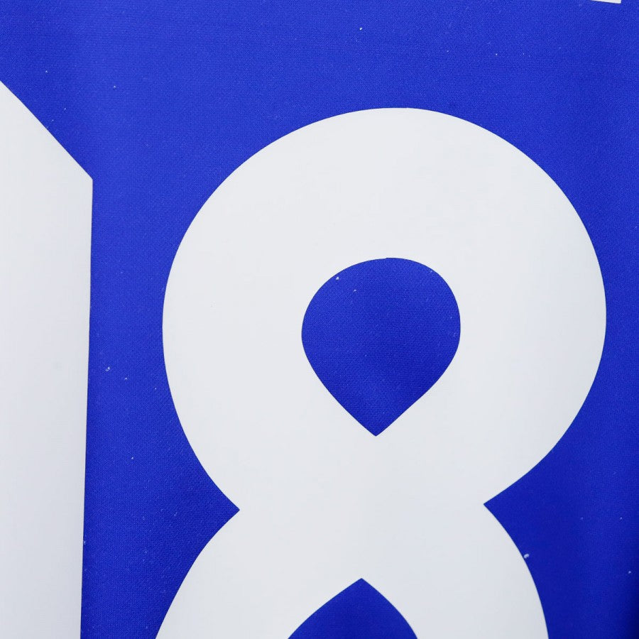 1999 Home Italy Shirt Kappa Baggio R 18. This classic Italy national team shirt is produced by Kappa, the technical sponsor of that era, and features the iconic blue color with white detailing. The chest displays the FIGC crest with three stars and the number 18, while the back proudly shows the name Baggio R. and number 18. Size is L.