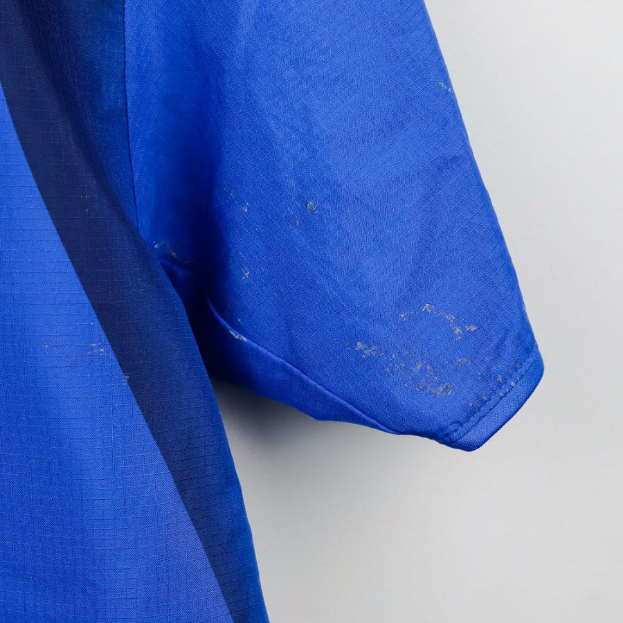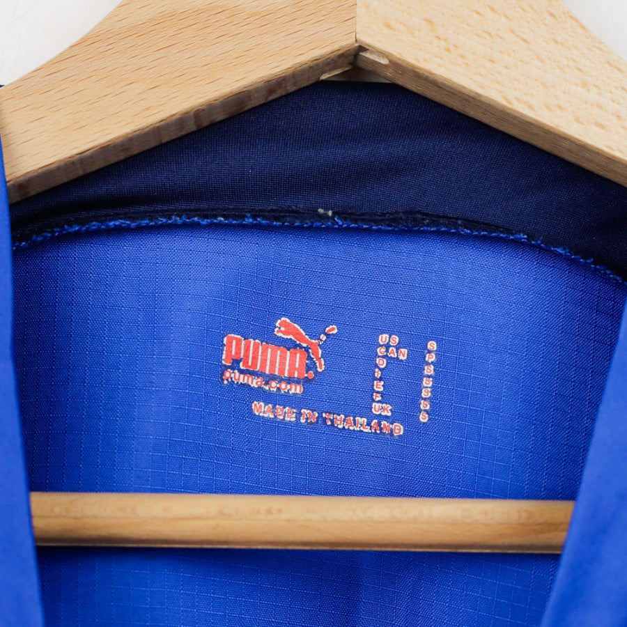 Home shirt worn by Italy during the 2006 season, made by Puma and featuring Francesco Totti with number 10. The technical sponsor Puma is visible on the chest and sleeves, alongside the official FIGC badge in the center. Size L as indicated on the internal label. This shirt became an icon of Italy’s World Cup triumph in Berlin, where Totti played a decisive role despite recovering from injury, showcasing his leadership and skill.