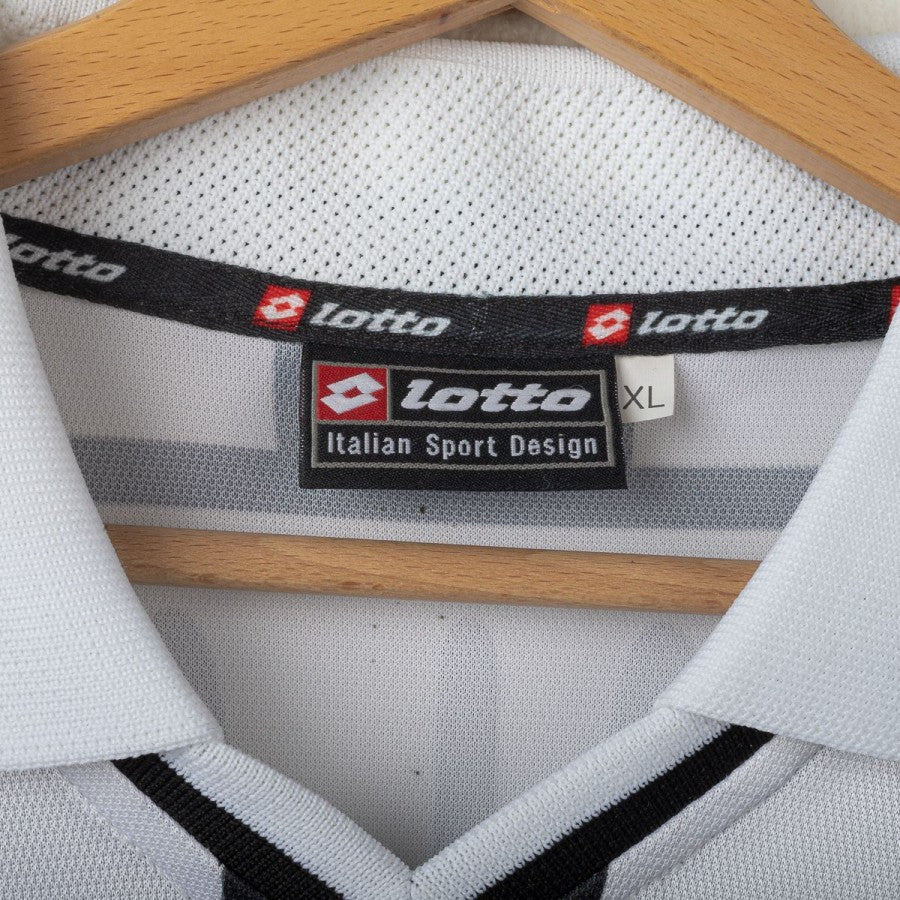 2001/2002 Juventus home shirt, size XL, crafted by Lotto. The iconic black and white striped design features the Lotto technical sponsor and Fastweb commercial sponsor prominently on the front. On the back, the name and number 9 of Chilean striker Marcelo Salas are printed, a player known for his explosive style and determination. This shirt represents one of the last seasons Juventus used a traditional collar design before transitioning to modern styles. The Lotto logo also appears on the sleeves, making the shirt instantly recognizable.