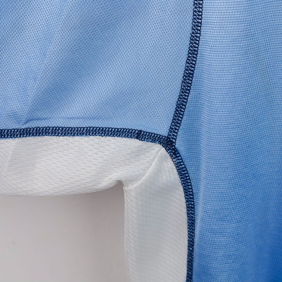 This Lazio jersey, produced by Puma for the 2001/2002 season, features the classic sky-blue color with white side inserts and black details. The round collar with subtle trims perfectly complements the modern design of the kit. The right chest features the Puma logo, while the left side displays the Lazio crest. The commercial sponsor Siemens Mobile is printed in the center. The back showcases "Fiore" and the number 20 in black with a white outline.
