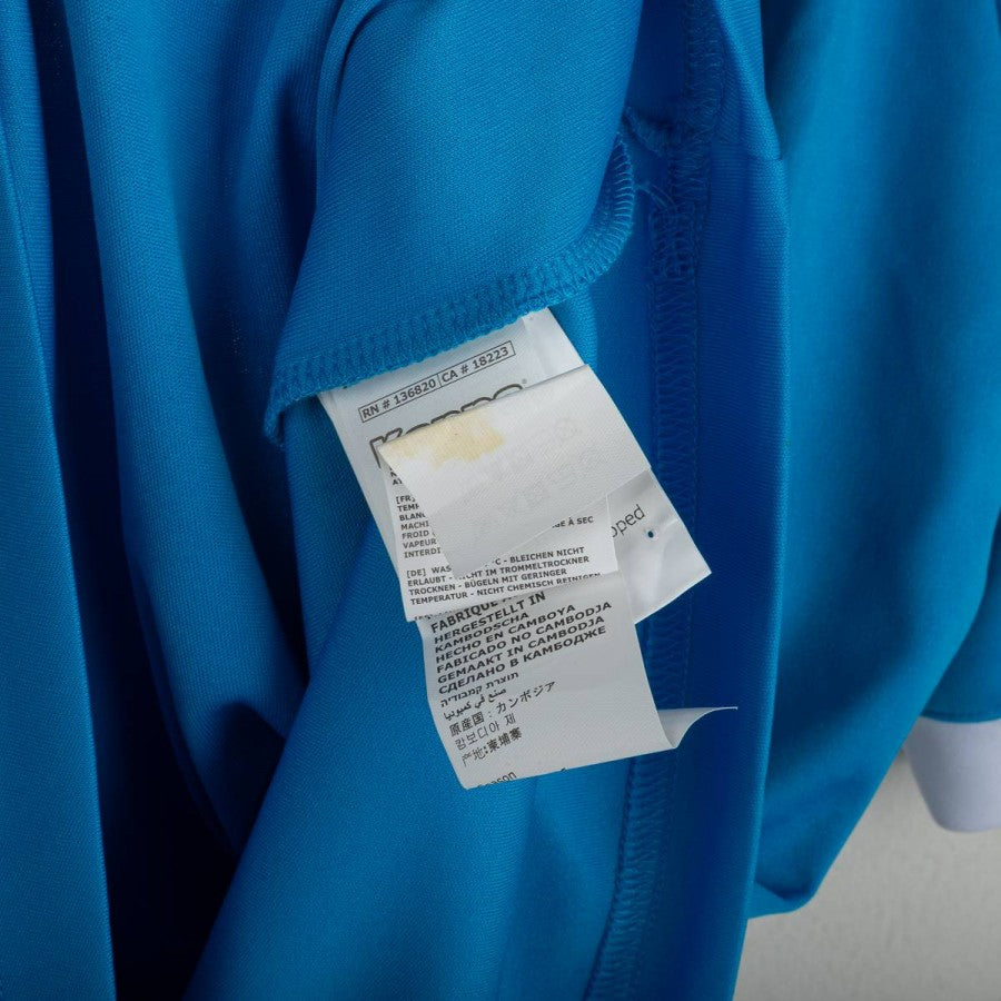 Official Napoli home shirt made by Kappa for the 2015/2016 season, featuring Lorenzo Insigne’s number 24 print. Classic sky blue design with white details on collar and sleeves. Embroidered club crest on the left chest and printed Kappa logo on the right. Main sponsors Lete and Garofalo on the front. Official Serie A TIM patch on the sleeve. Kombat model with Kappa’s performance technology for a slim, breathable fit. Medium.