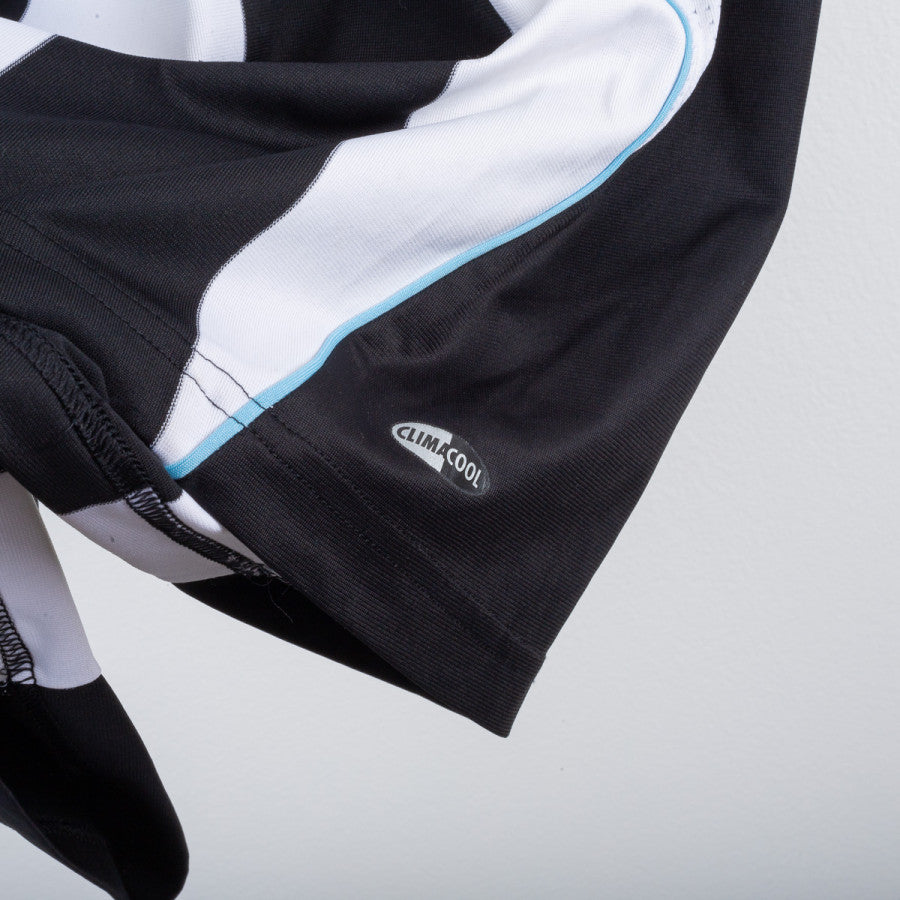 Official Newcastle United Home Shirt for the 2007/2008 season made by Adidas, featuring name and number Owen 10. Classic black and white vertical stripes with Northern Rock sponsor and embroidered club crest on the chest. Light blue collar details and Climacool technology for maximum comfort and breathability. A true Premier League classic honoring an unforgettable era and player. Size Medium.