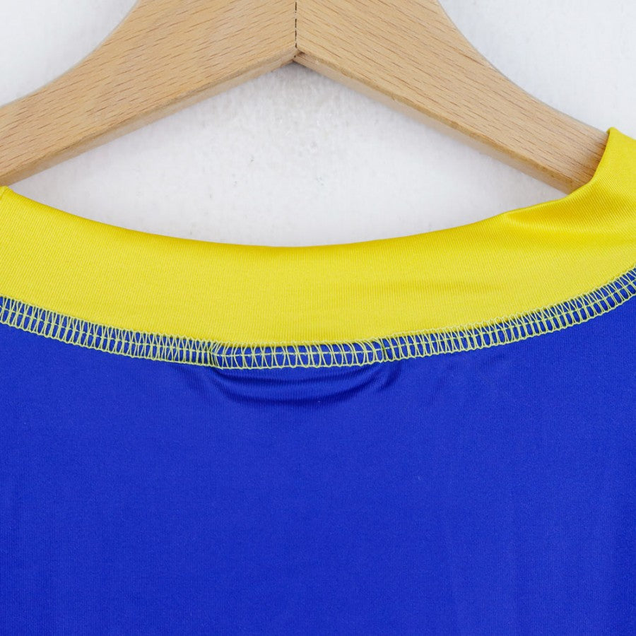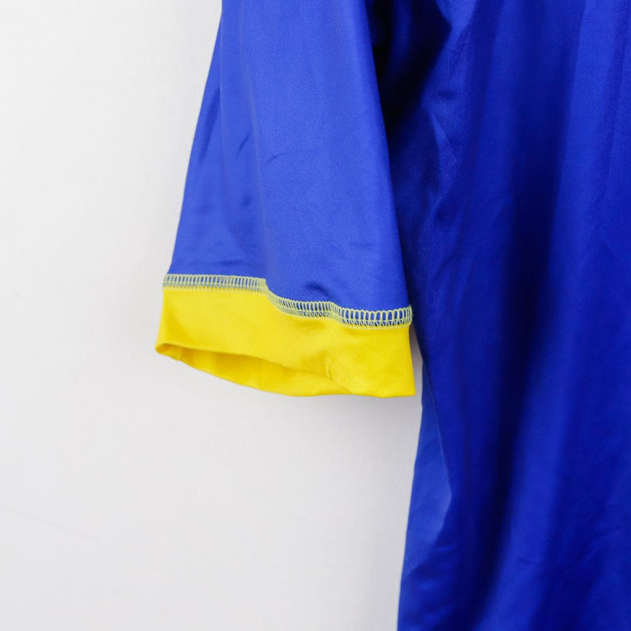 Parma home jersey from the 2006/2007 season, made by Erreà. The design features the club’s iconic yellow cross on a blue background. The chest displays the Erreà logo, Parma Calcio badge, and commercial sponsors Gimoka and Play Radio. The lightweight, breathable fabric ensures maximum comfort. Size XL.