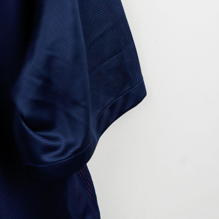 2016/2017 Home PSG Shirt Cavani 9 by Nike. This Paris Saint-Germain home kit features the technical sponsor Nike on the chest and Fly Emirates as the central commercial sponsor. Size is L, as shown on the collar label. The back displays CAVANI and number 9.