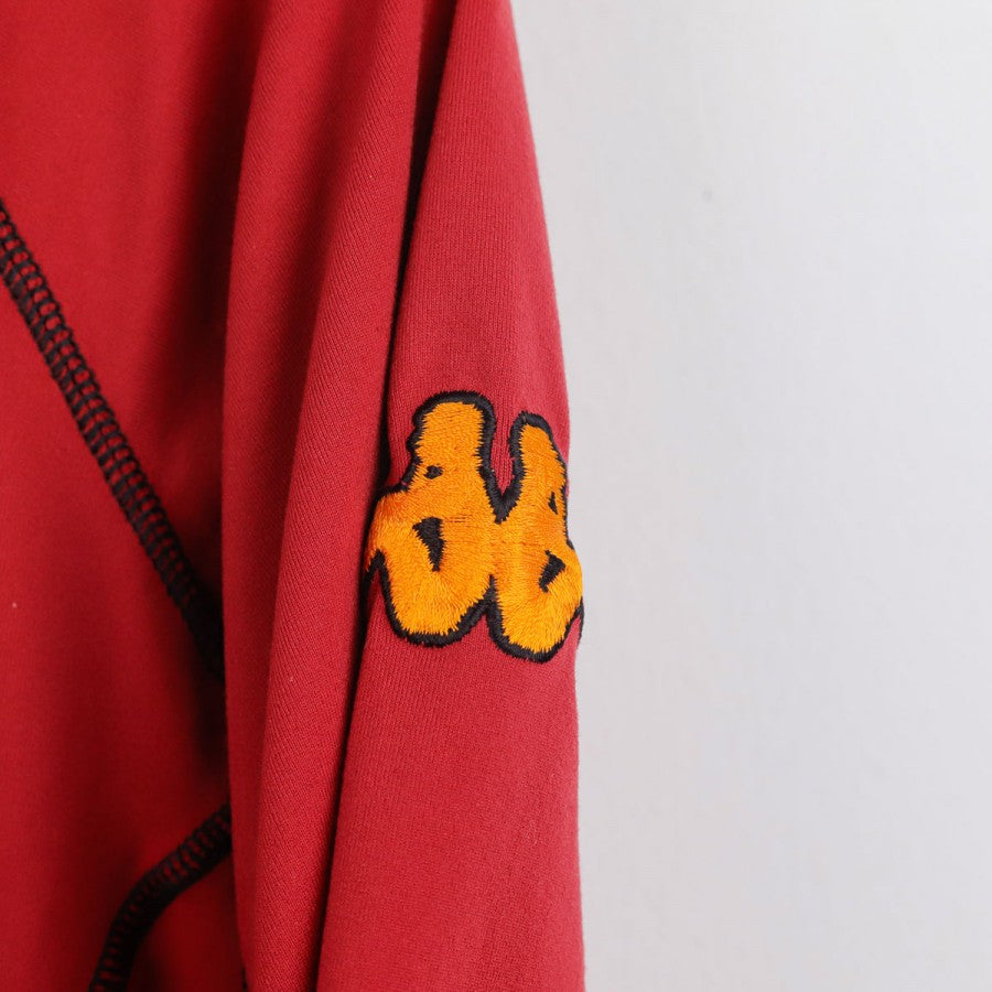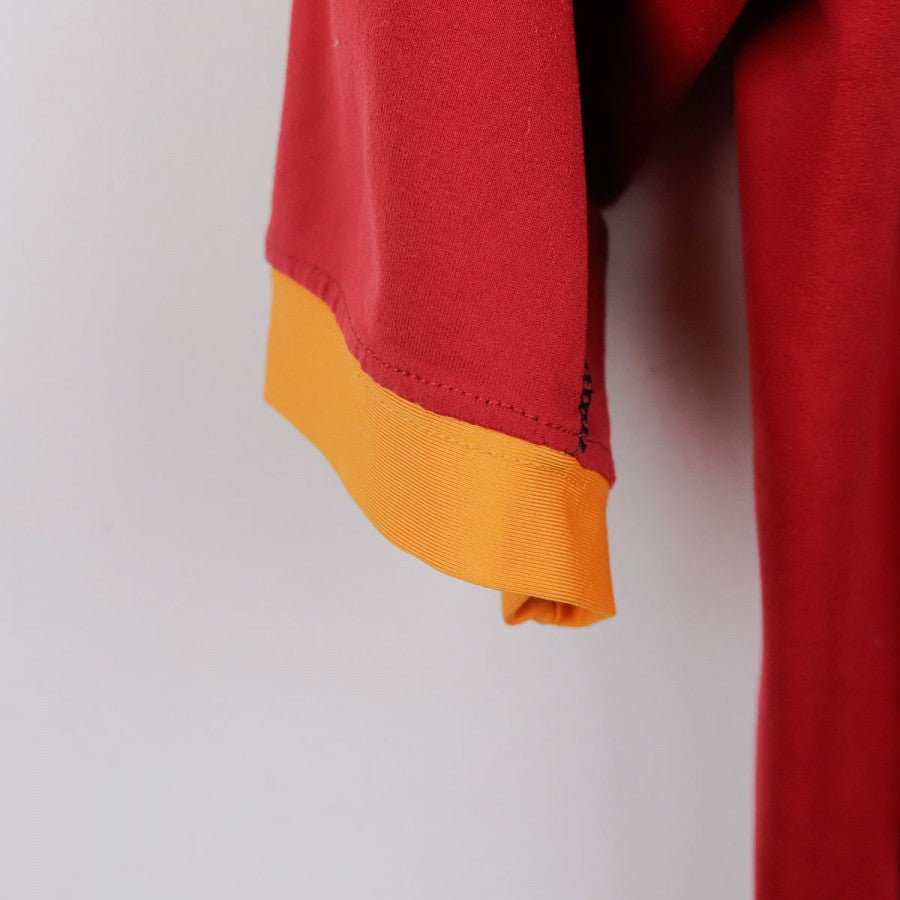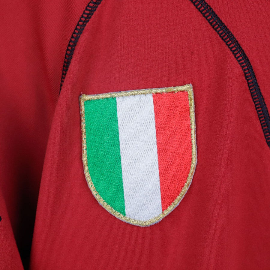 Official home shirt of AS Roma from the 2001/2002 season, featuring Francesco Totti’s name and number 10. Short-sleeved model in the club’s traditional red with yellow details on the collar and sleeve edges. The tight-fit Kappa Kombat fabric ensures a perfect fit. The Roma crest is applied on the left chest, while the INA Assitalia sponsor is prominently displayed in the center. The Kappa logo appears on the front and sleeves. On the right chest, the Italian Scudetto is stitched, celebrating the title won the previous season. Size XXL.