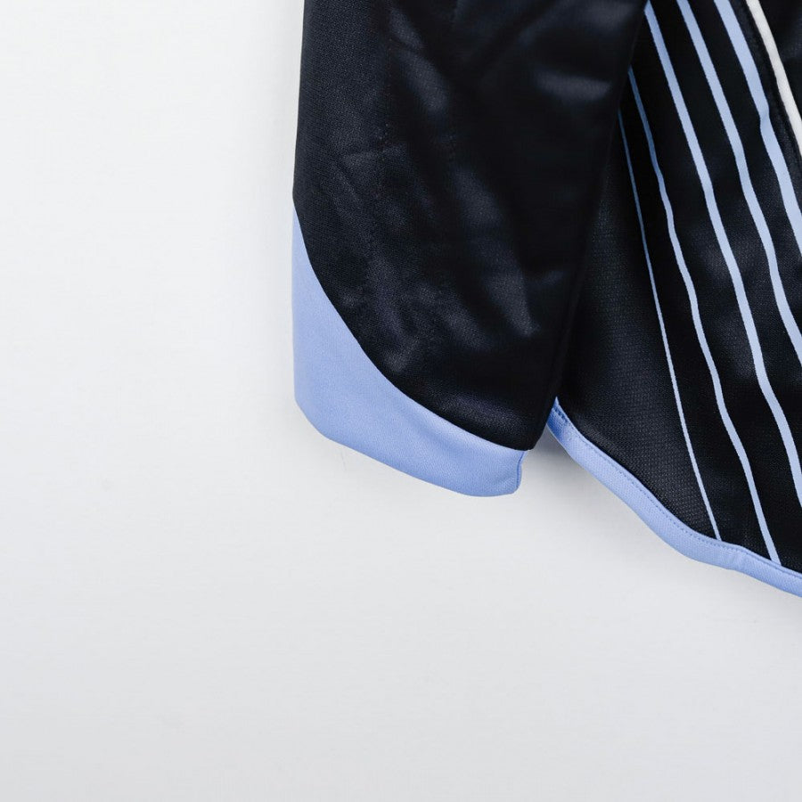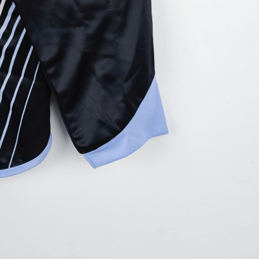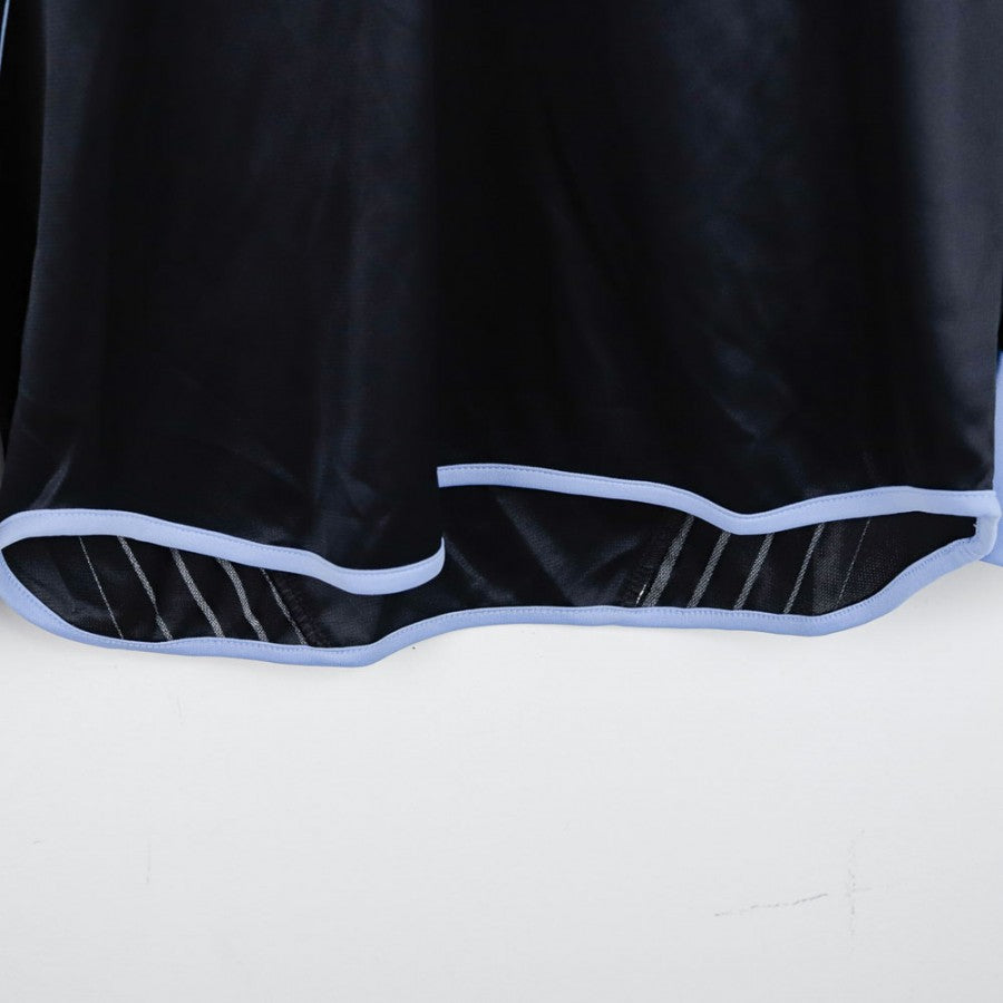 The official Napoli goalkeeper jersey for the 2007/2008 season, produced by technical sponsor Diadora, features a sleek black design with light blue details. The club crest, embroidered on the chest, is paired with the commercial sponsor Lete at the center. The long-sleeve design ensures comfort and practicality, making it perfect for fans. This jersey, in size S, is a historical piece for collectors and those who want to relive Napoli’s return to Serie A.